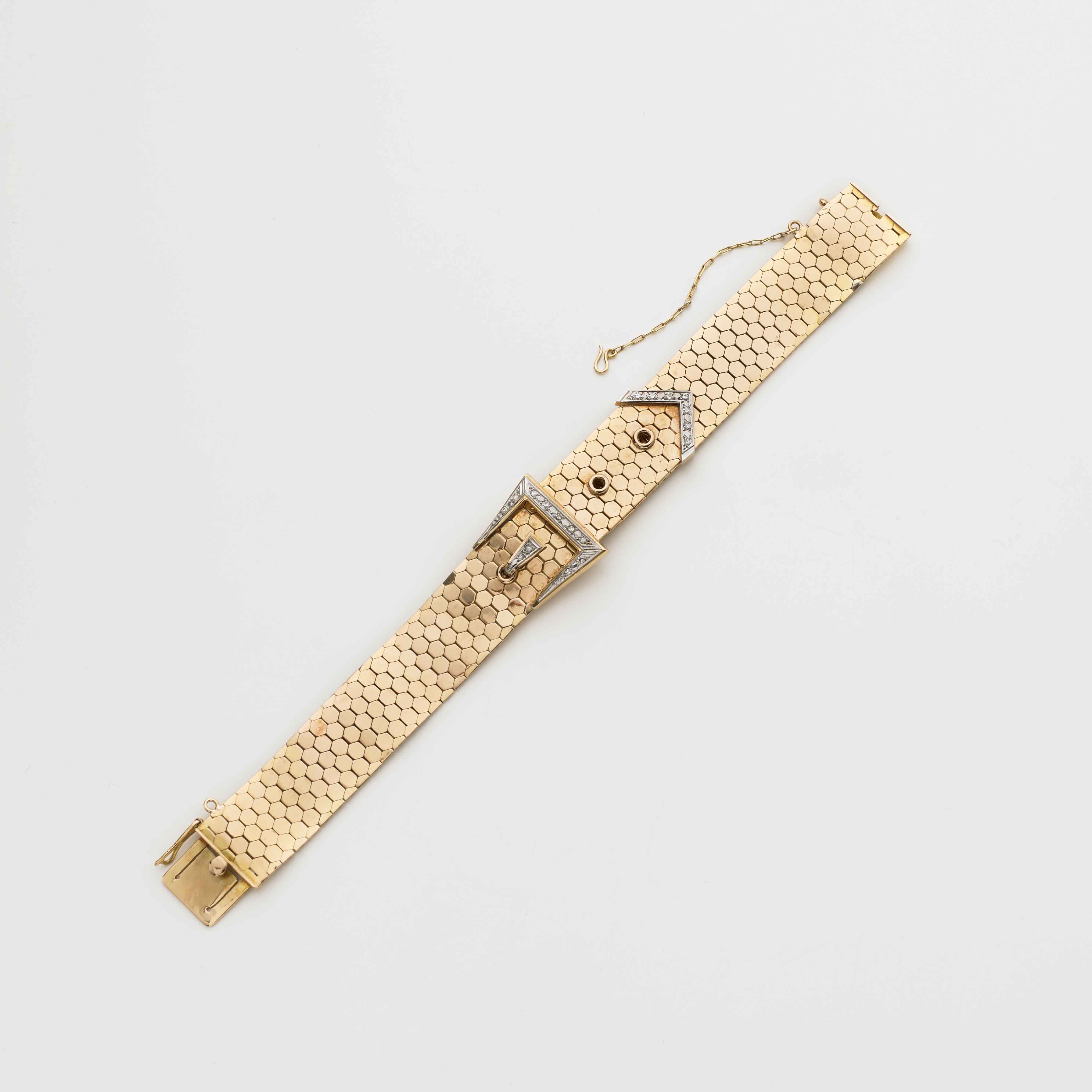 Bracciale in oro rosso e bianco a guisa di fibbia con diamanti rotondi,...