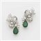 Orecchini in oro bianco con clips diamanti rotondi, baguette, tapered e marquise e due gocce taglio composito di smeraldo per ct 4,70 l'uno circa g. 21,70 White gold earrings with diamonds and emeralds