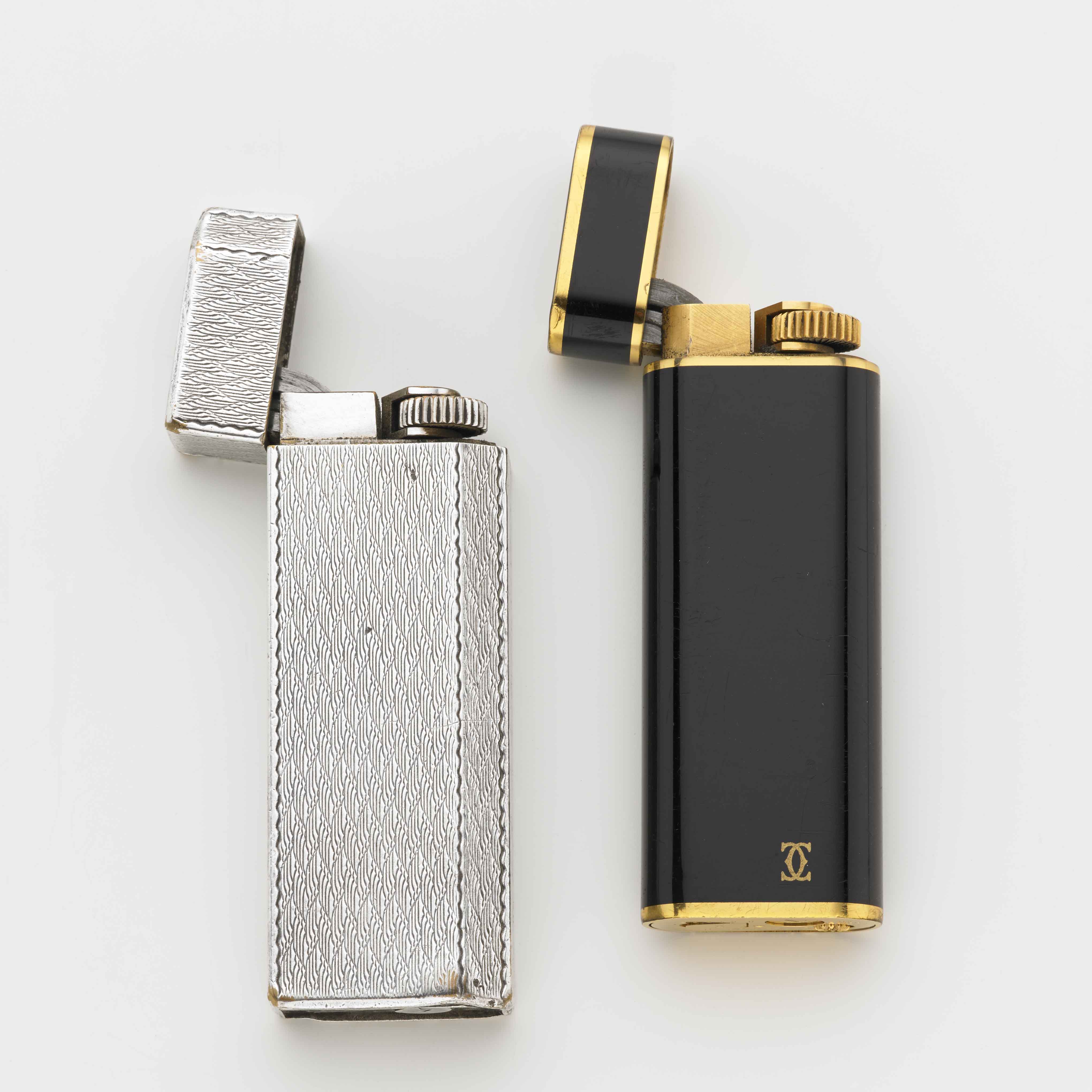 Due accendini, uno placcato oro e laccatura nera, g.77,30, les Must de...