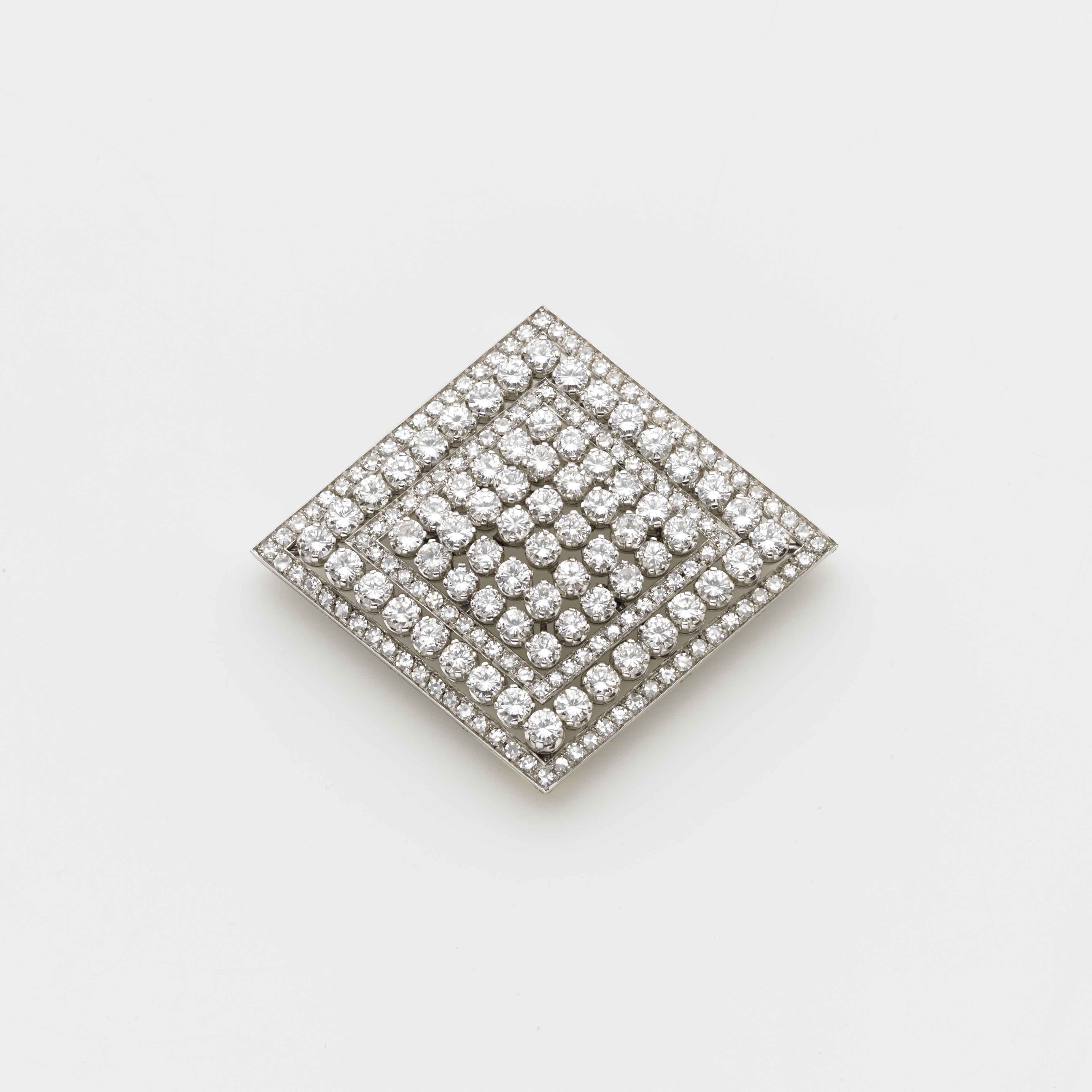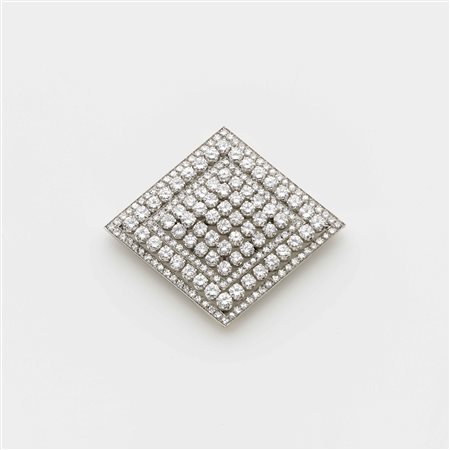 Spilla in oro bianco a forma di rombo con diamanti rotondi taglio a brillante...