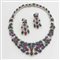 Demi-parure in oro bianco con diamanti rotondi taglio a brillante foglie scolpite in smeraldo rubino e zaffiro a formare un collier scalato e semirigido ed un paio di orecchini pendenti per complessivi g. 138,70 White gold demi-parure with diamonds, emeralds, rubies, and sapphires comprising a graduated semi-rigid necklace and drop earrings