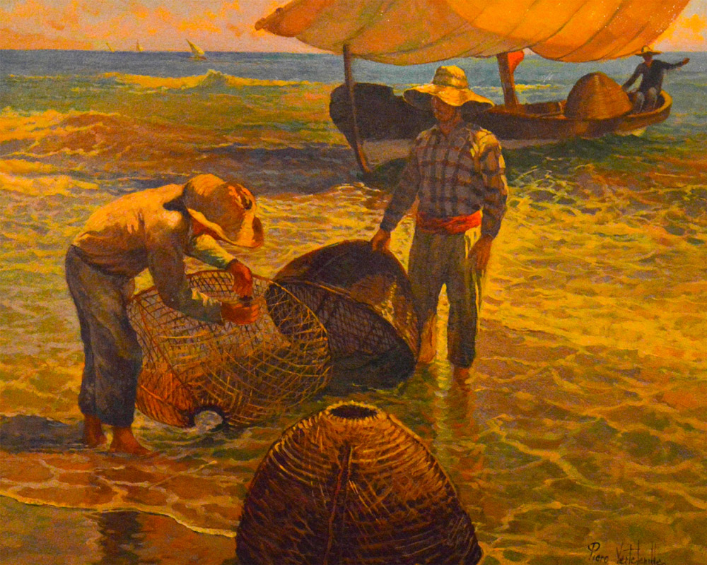 Lot 14 | PIERO VERTEVILLE Pulizia delle nasse olio su tavola 50x40 Opera pubblicata