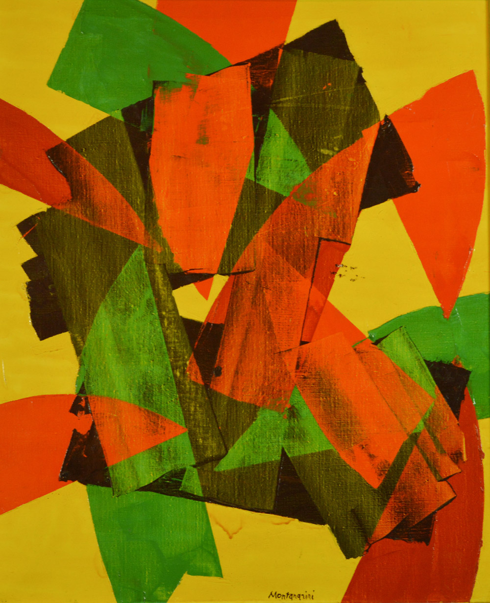 LUIGI MONTANARINI Firenze 1906- 1998 Composizione Olio e collage su carta 50x60