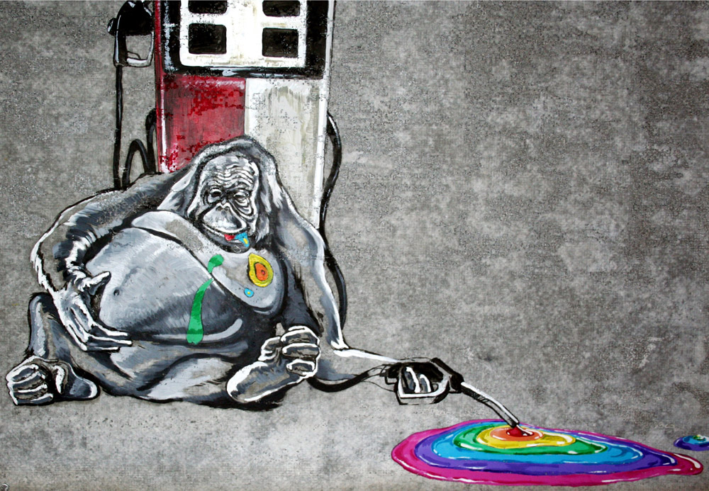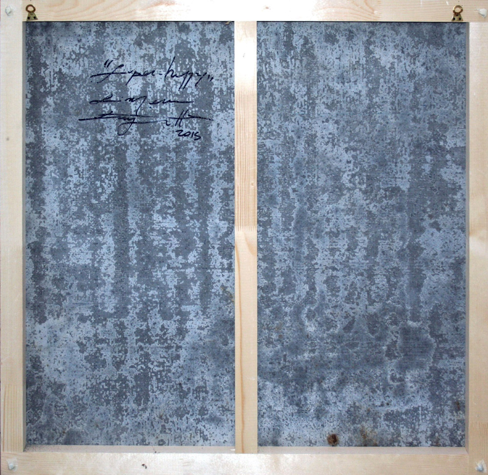 Simone Fugazzotto 1983, Milano (Mi) - [Italia] Super-happy, felicità a litri olio e acrilico su cemento 90x100 2015 firma dell’artista sul retro; lastra di cemento di 6 mm su supporto telaio in legno certificato di autenticità firmato dall’artista