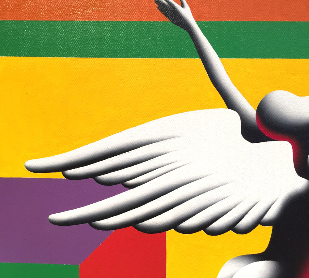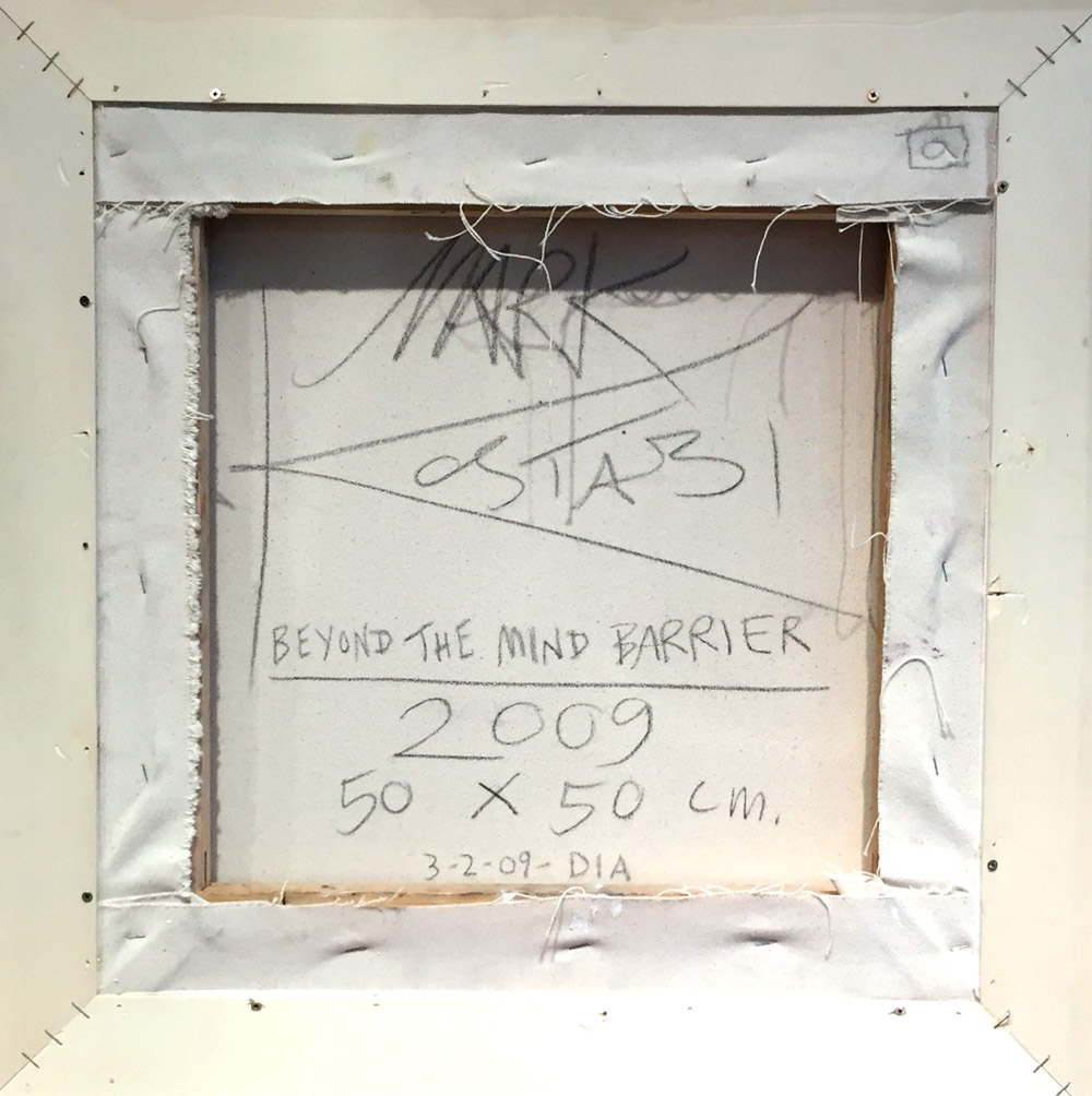 Mark Kostabi 1960, Whittier (California) - [USA] Beyond the mind barrier mista su tela 50x50 2009 firma dell’artista sul retro; con cornice formato 70x70 cm certificato di autenticità firmato dall’artista