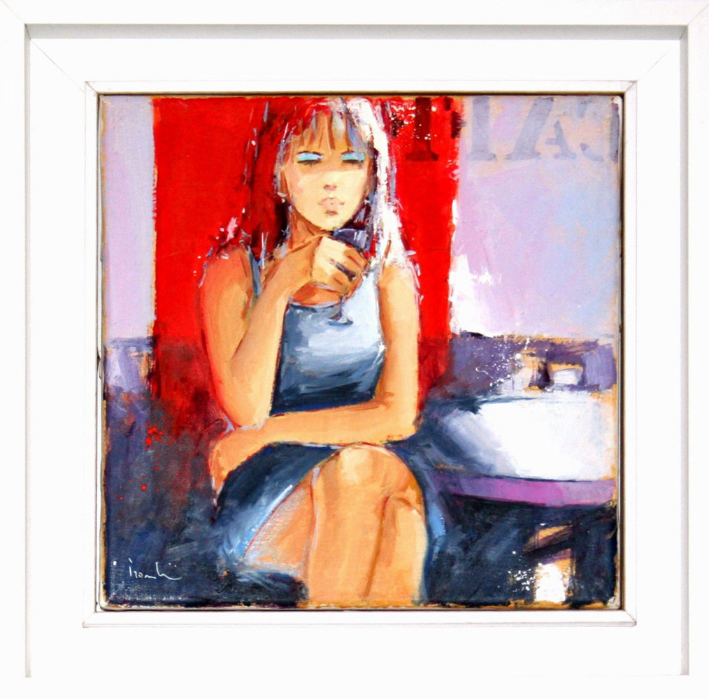 Giuliano Trombini 1953, Ferrara (Fe) - [Italia] senza titolo olio su tela 20x20 2010 firma dell’artista in basso a sinistra e sul retro; con cornice formato 28×28 cm certificato di provenienza garantita Picenum