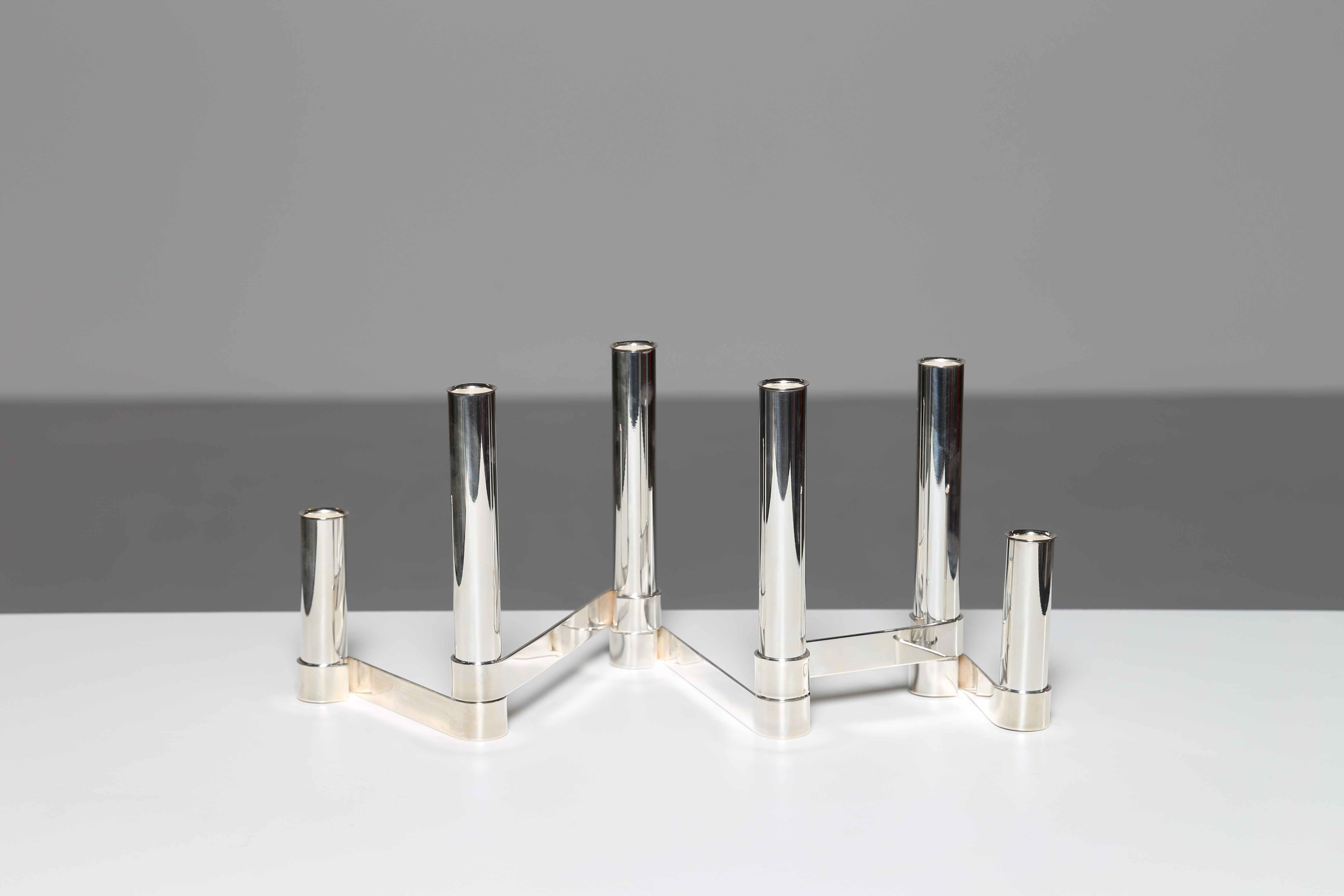 PONTI GIO' (1891 - 1979) Per Sabatini. Centrotavola snodabile a tubi. Ottone argentato. Cm 64,50 x 18,50 x 12,00.