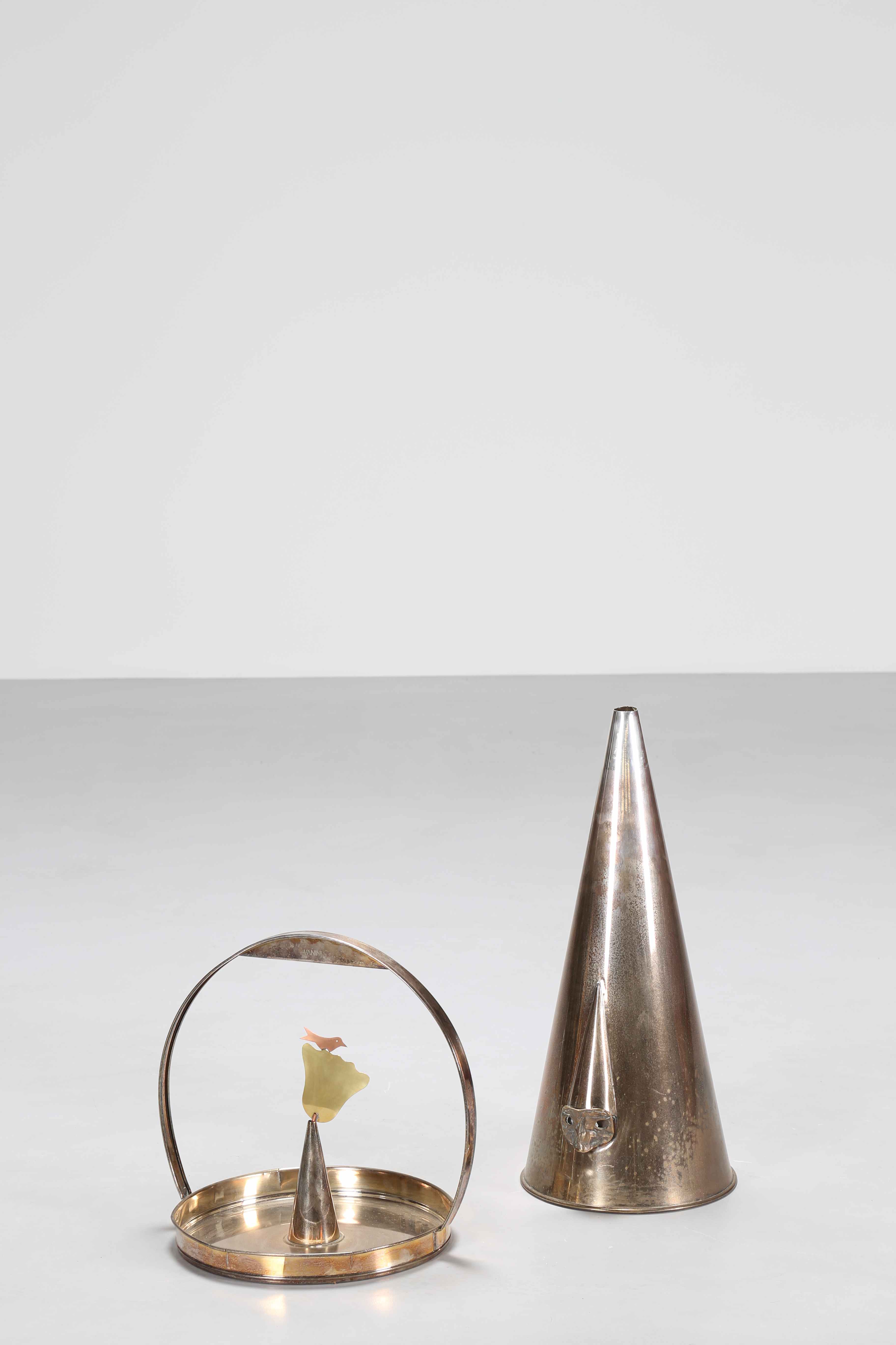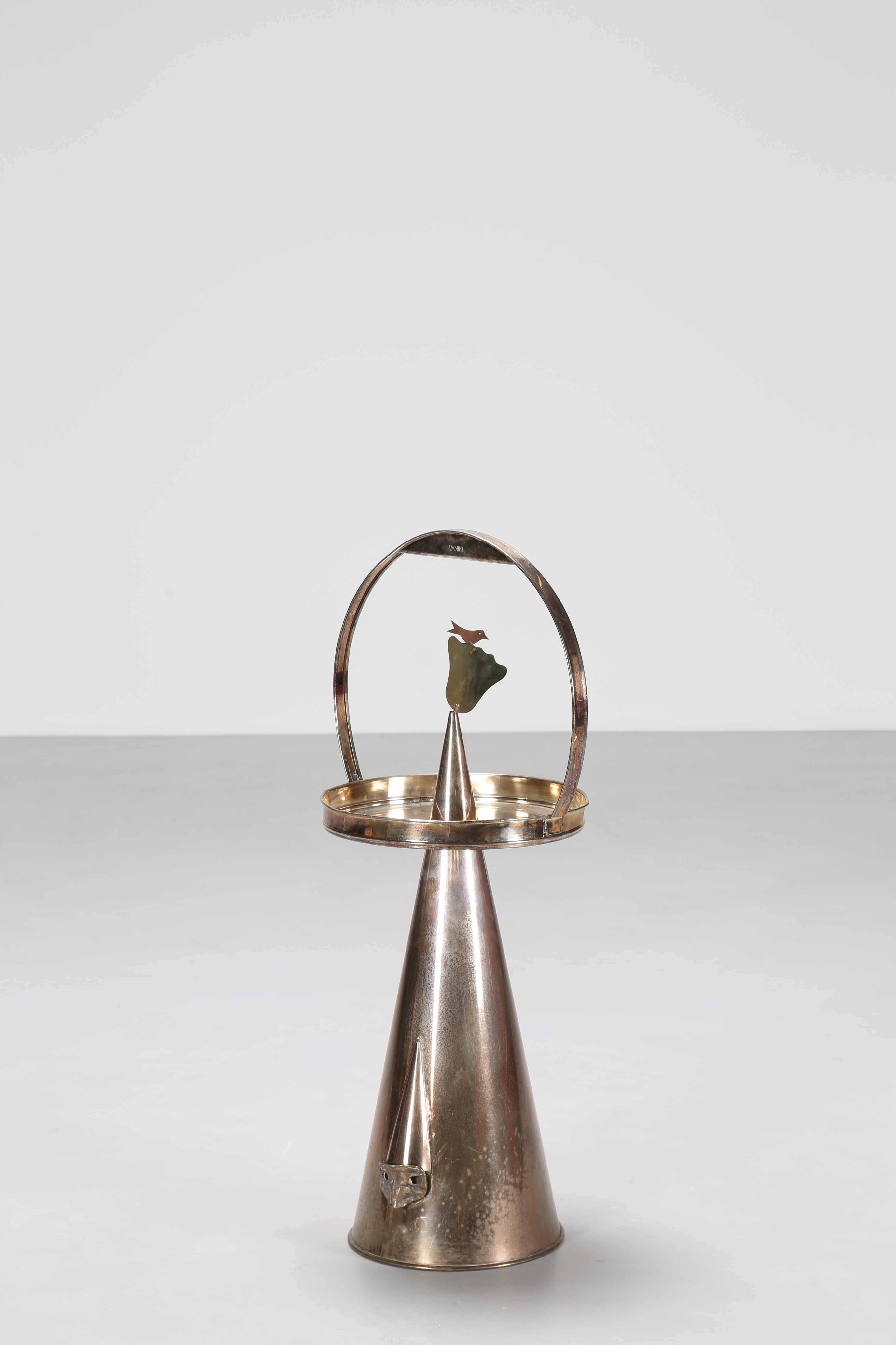 DALISI RICCARDO Per Vanini. Tavolino vassoio. Metallo argentato. Cm 42,00 x 92,00 x 35,00. Anni '70. Scultura Pulcinella.