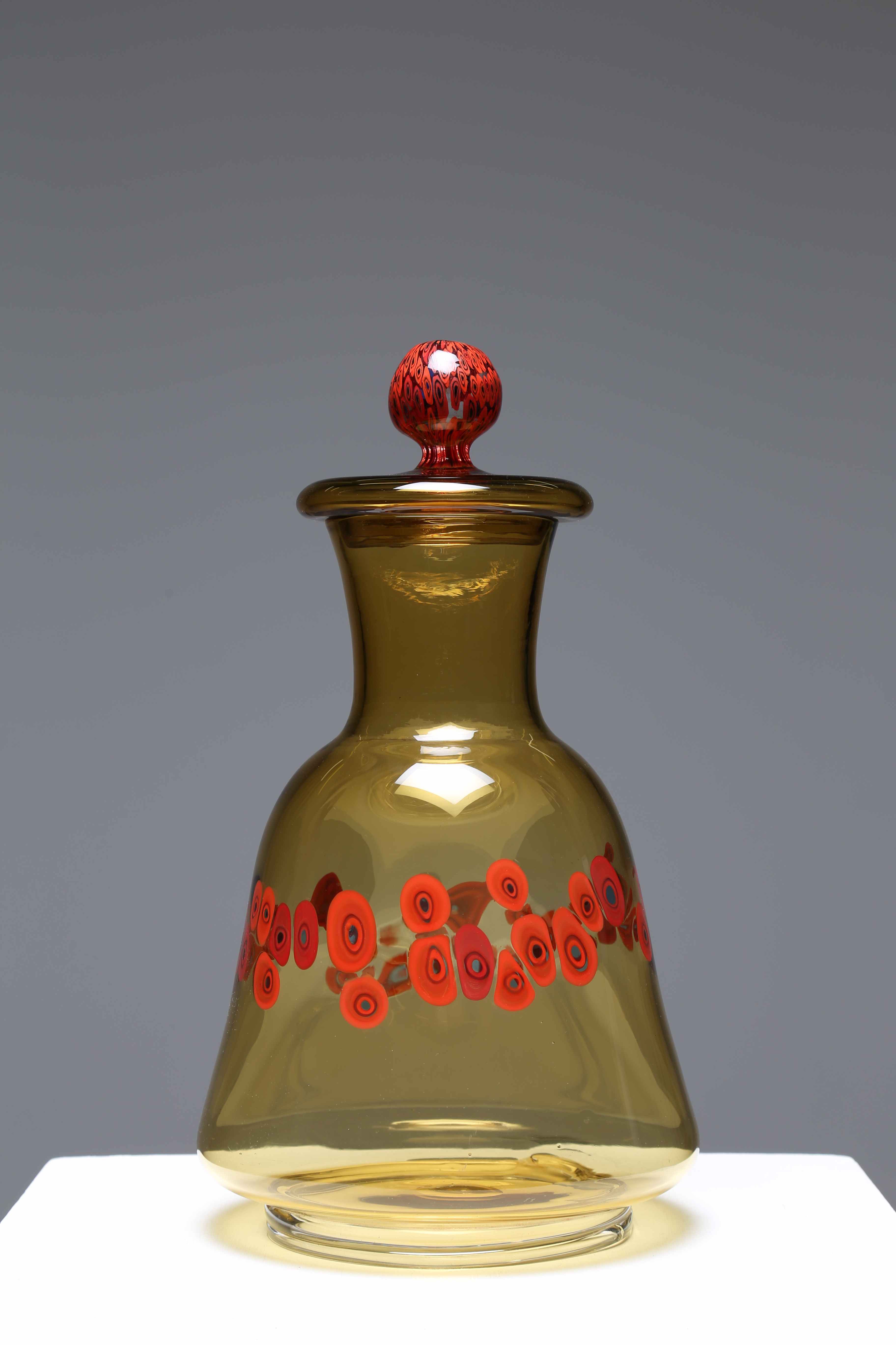 POTENZA GIANMARIA (n. 1936) Per La Murrina. Bottiglia con tappo. 1969. Vetro e murrine di Murano. Cm 23,00 x 40,00 x 23,00.