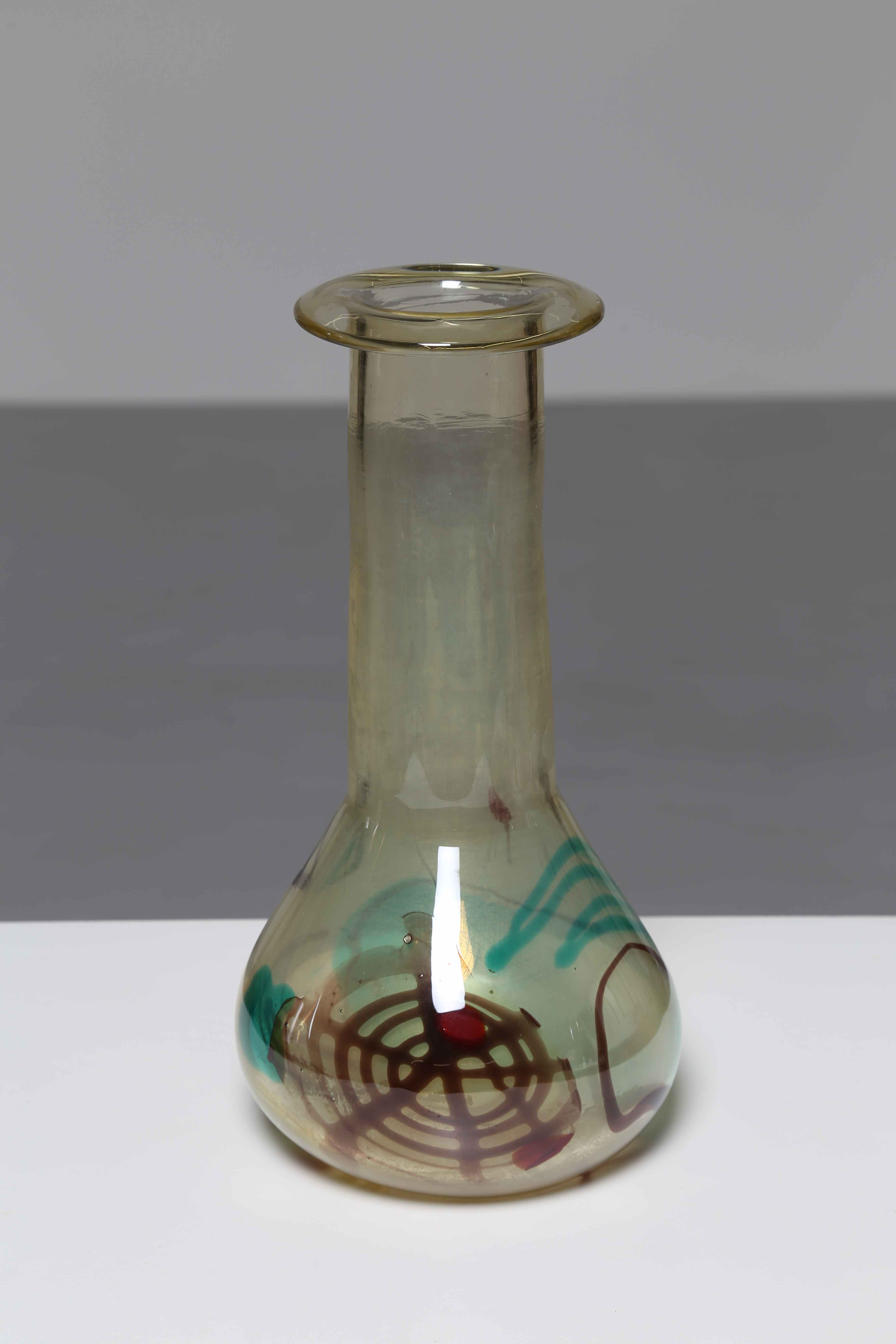 SCARPA CROCE LUIGI (1901 - 1967) Per IVR Mazzega. Vaso bianco con inclusioni policrome astratte. 1960. Vetro di Murano. Cm 17,00 x 38,00.