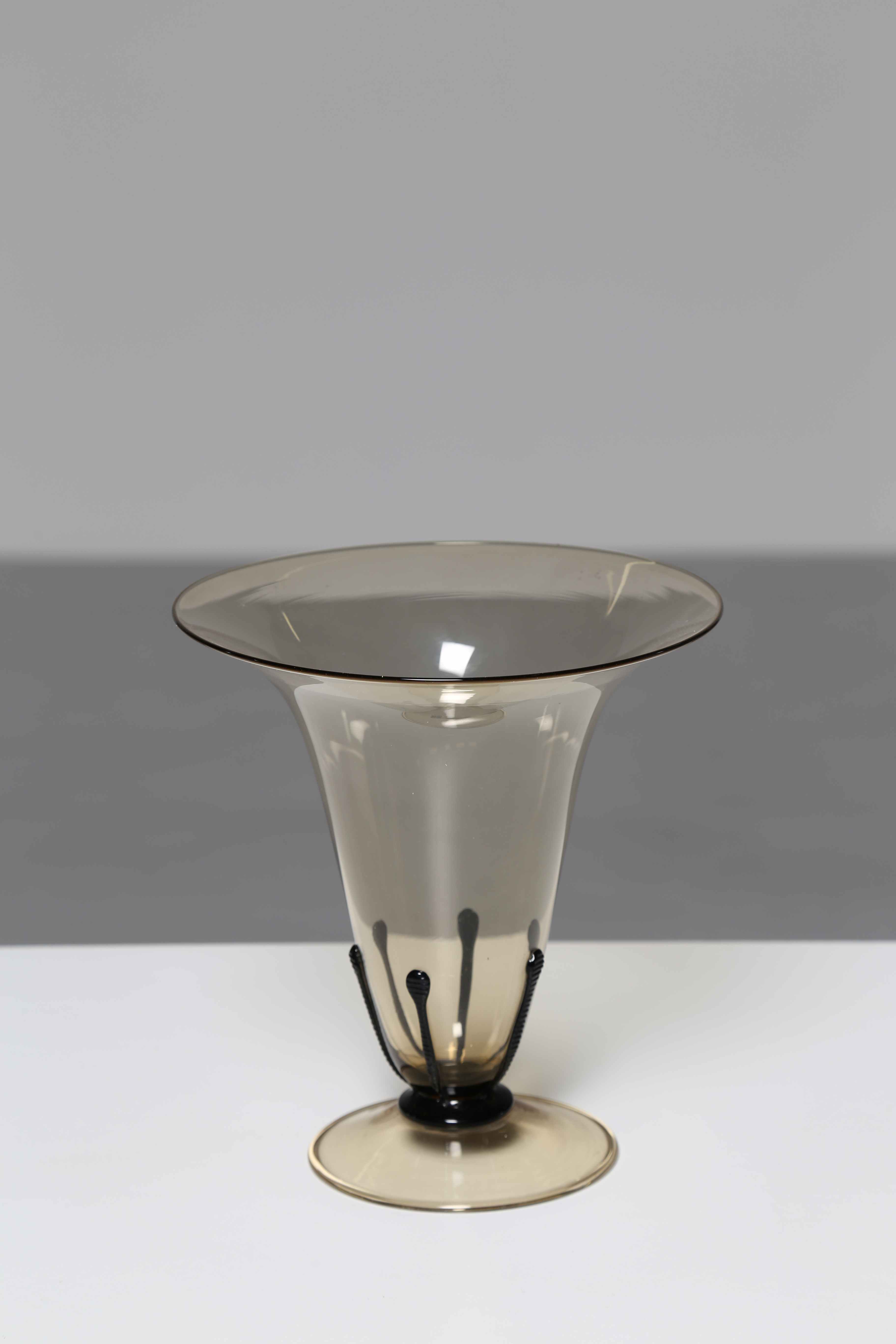 ZECCHIN VITTORIO (1878 - 1947) ATTRIBUITO A. Vaso Ambra. Vetro di Murano. Cm 19,40 x 20,23. Pauly & C. - CVM- Compagnia Venezia Murano.