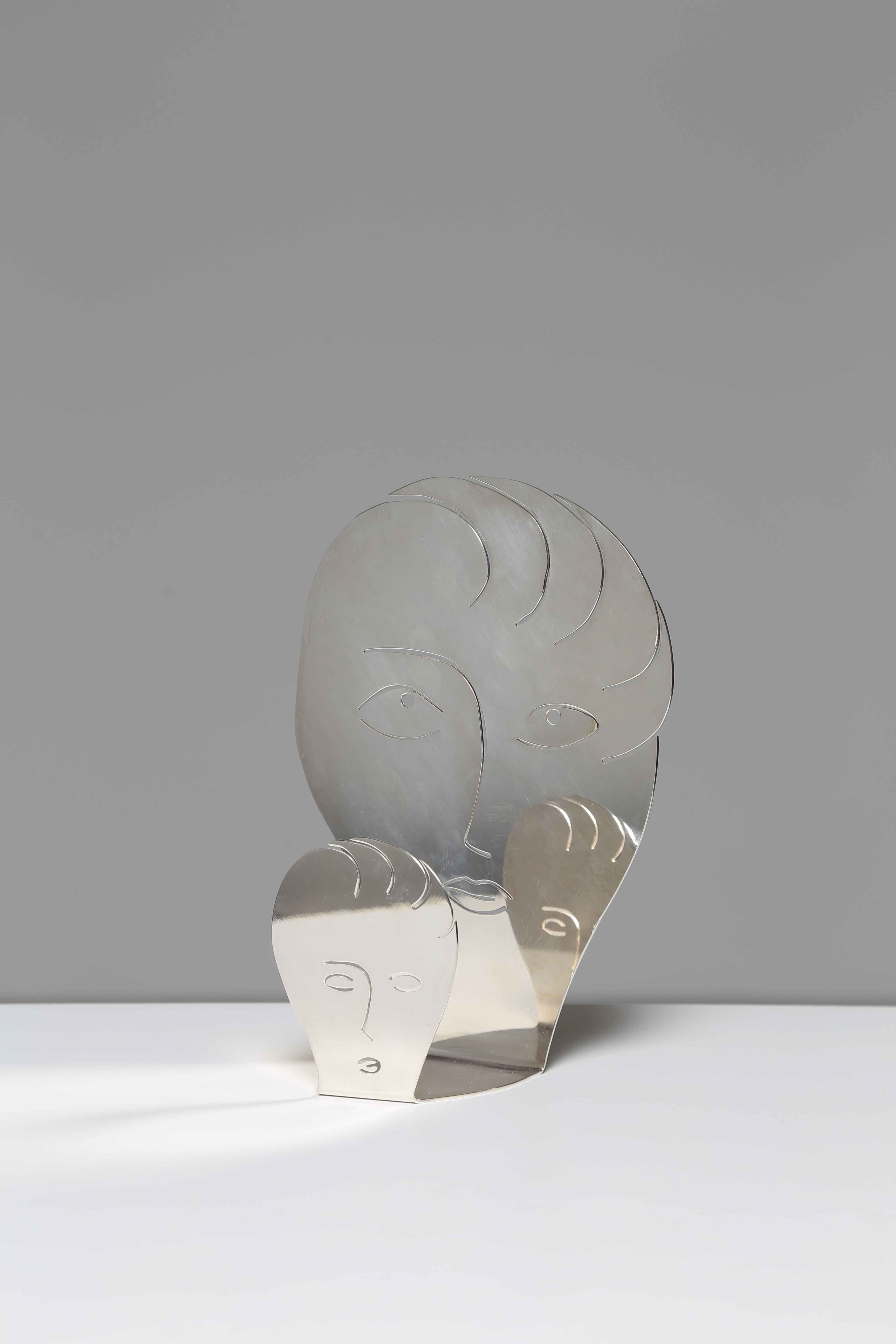 PONTI GIO' (1891 - 1979) Per Sabatini. Scultura madre e figlia. Ottone argentato. Cm 18,00 x 24,50 x 9,00.