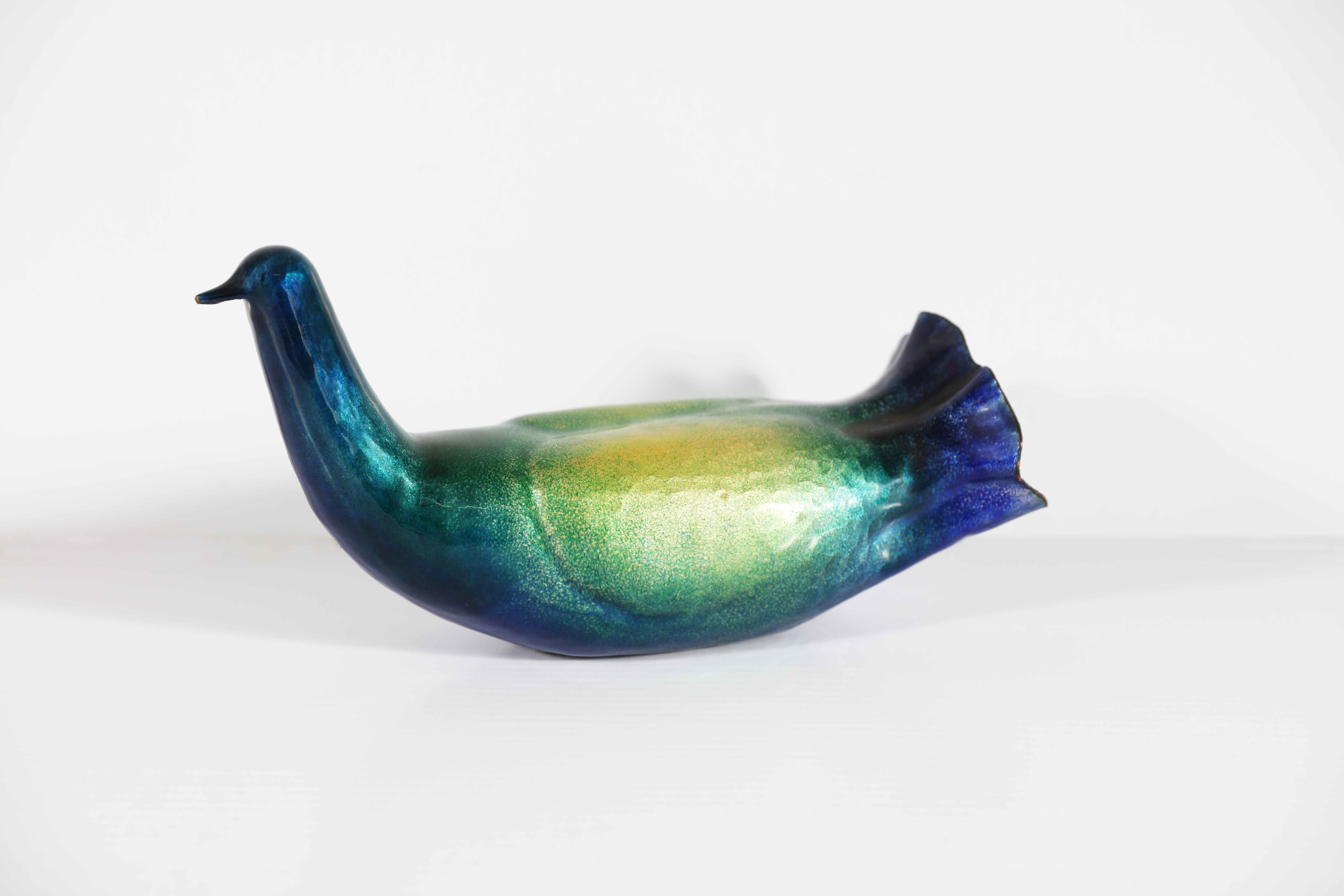 DE POLI PAOLO (1905 - 1996) Piccione. Rame smaltato. Cm 30,00. Dalla serie Famiglie di gruppi animali, presentati alla Biennale di Venezia del 1948. Pubblicazioni: L'arte dello smalto di Paolo De Poli, catalogo della mostra antologica, Padova, Palazzo della Ragione, 10 Novembre 1984.
