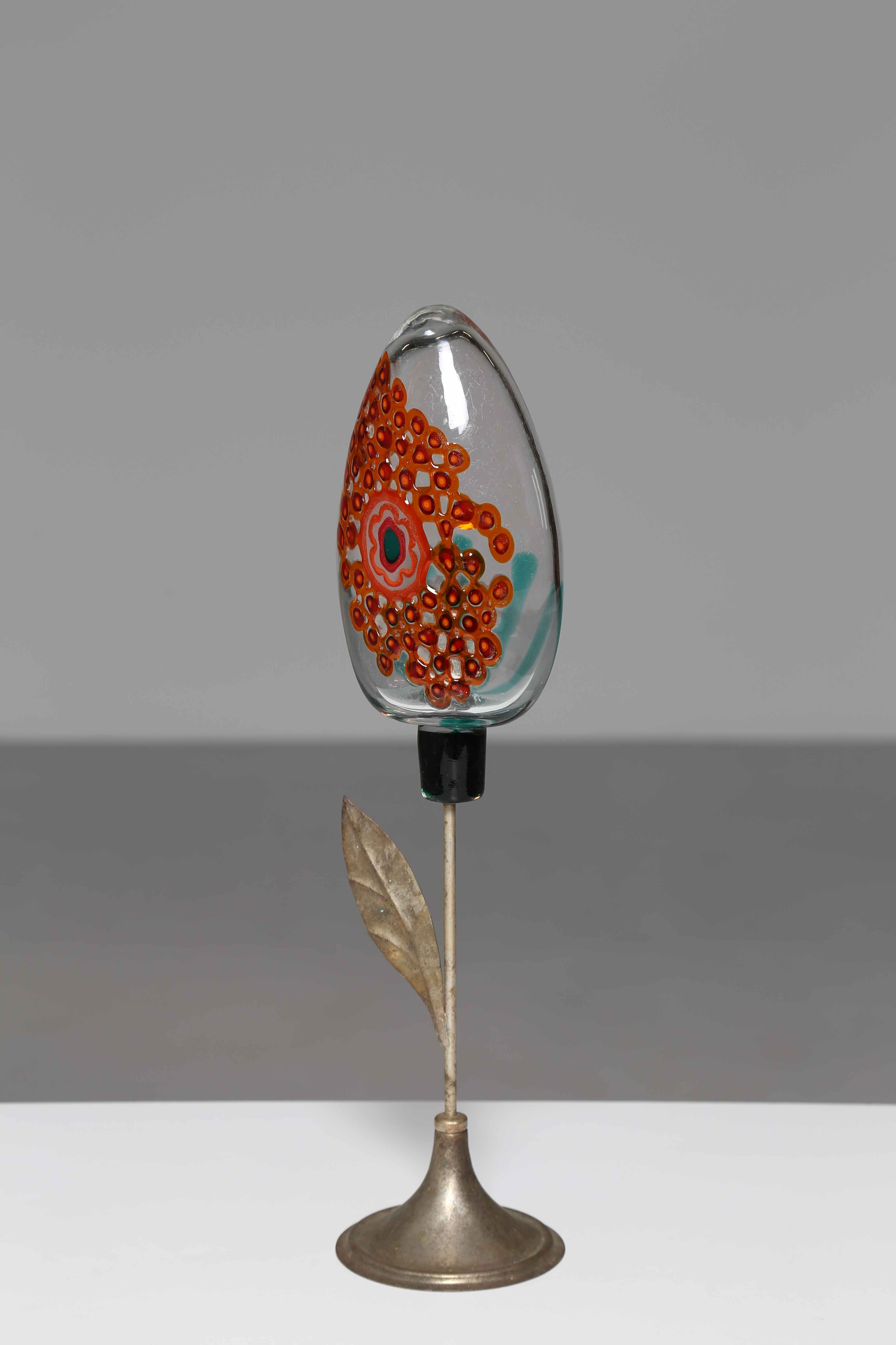 FUGA ANZOLO Per Aureliano Toso, Murano. Fiore a murrine con stelo in metallo argentato. 1969. Metallo argentato e vetro. Cm 12,00 x 48,00 x 11,50. Pubblicazione: Catalogo Glass Venetia, collezione Nancy Olinik e Giorgio Spanu, Charta Edizione, pag.176. Anni '60.