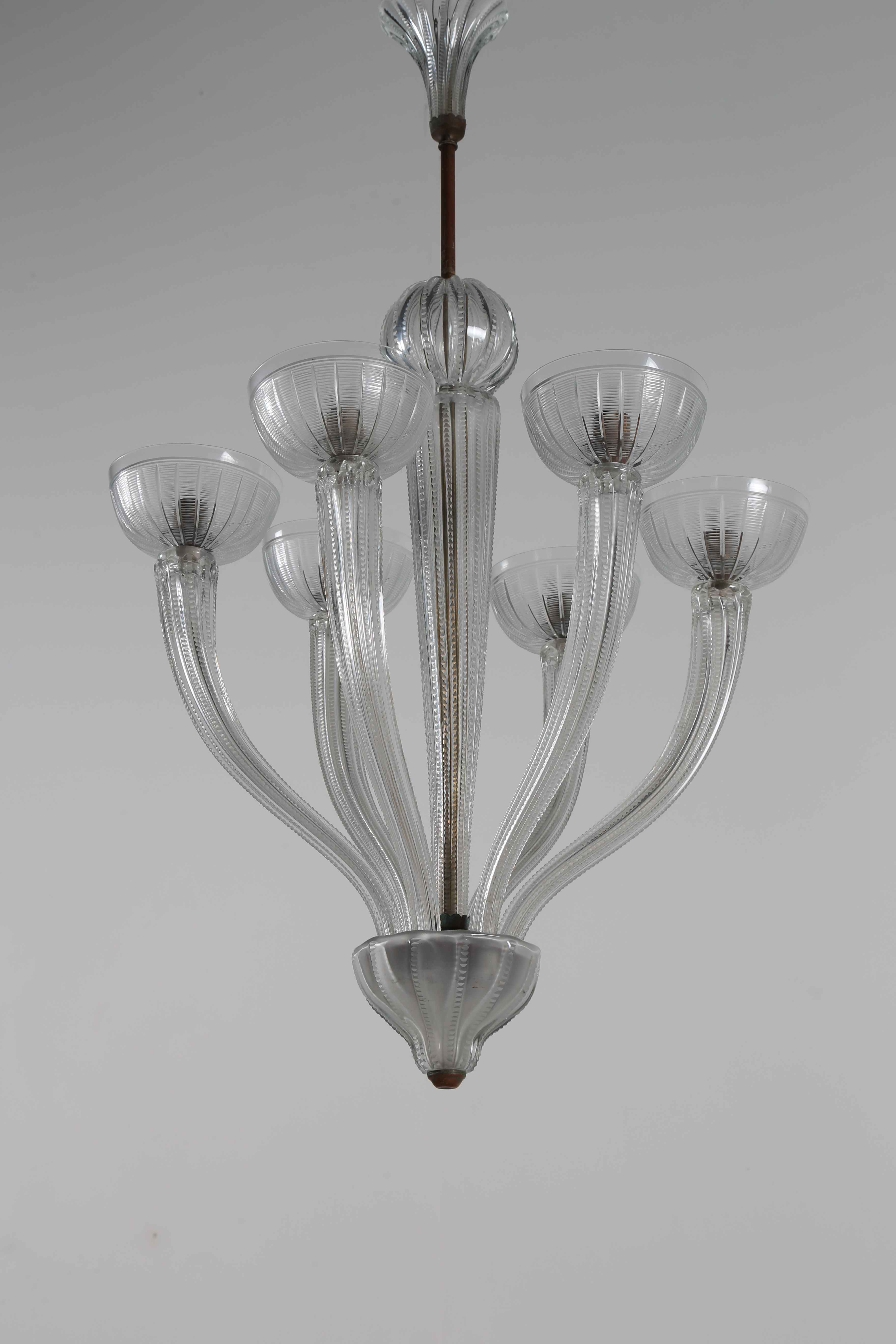 SCARPA CARLO (1906 - 1978) Lampadario. 1930. cristallo inciso. Cm 63,00 x 105,00. Pubblicazione: Catalogo Ragionato 1921/1986, sezione Catalogo Blu fig. 183, Skira Edizioni, pag. 264.