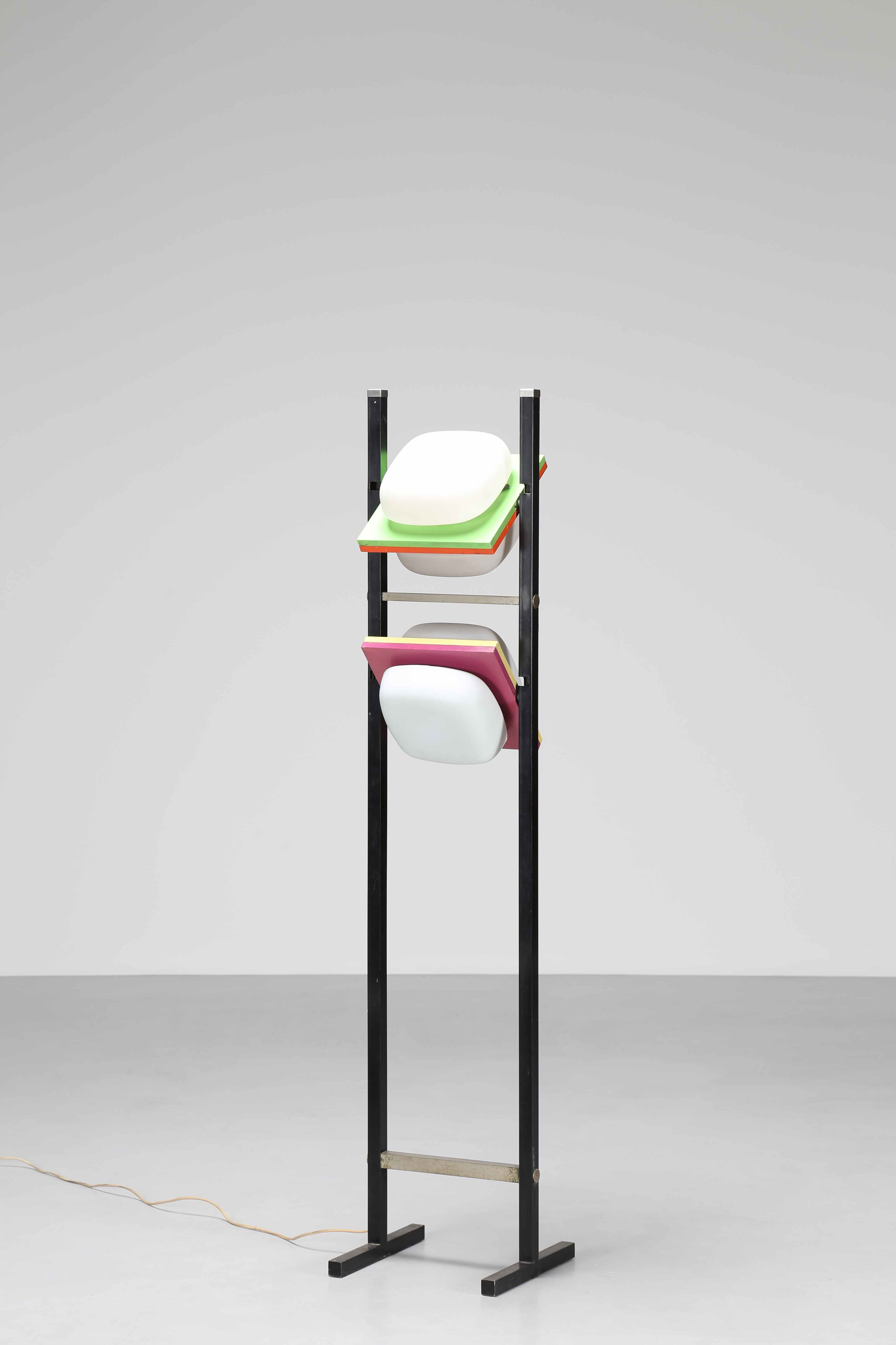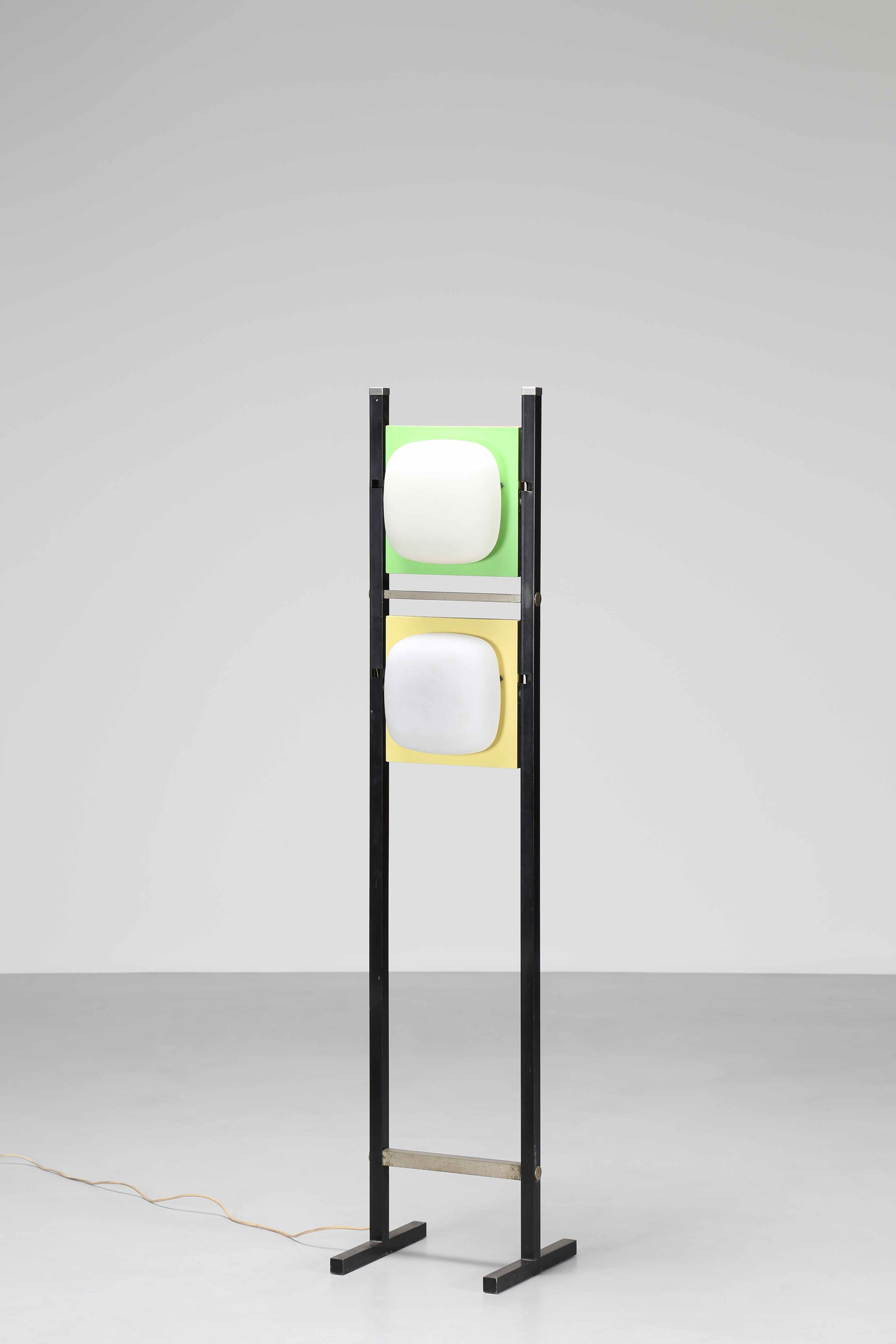Lot 182 | MANIFATTURA ITALIANA Piantana a 4 luci basculanti. Metallo, vetro e ottone....