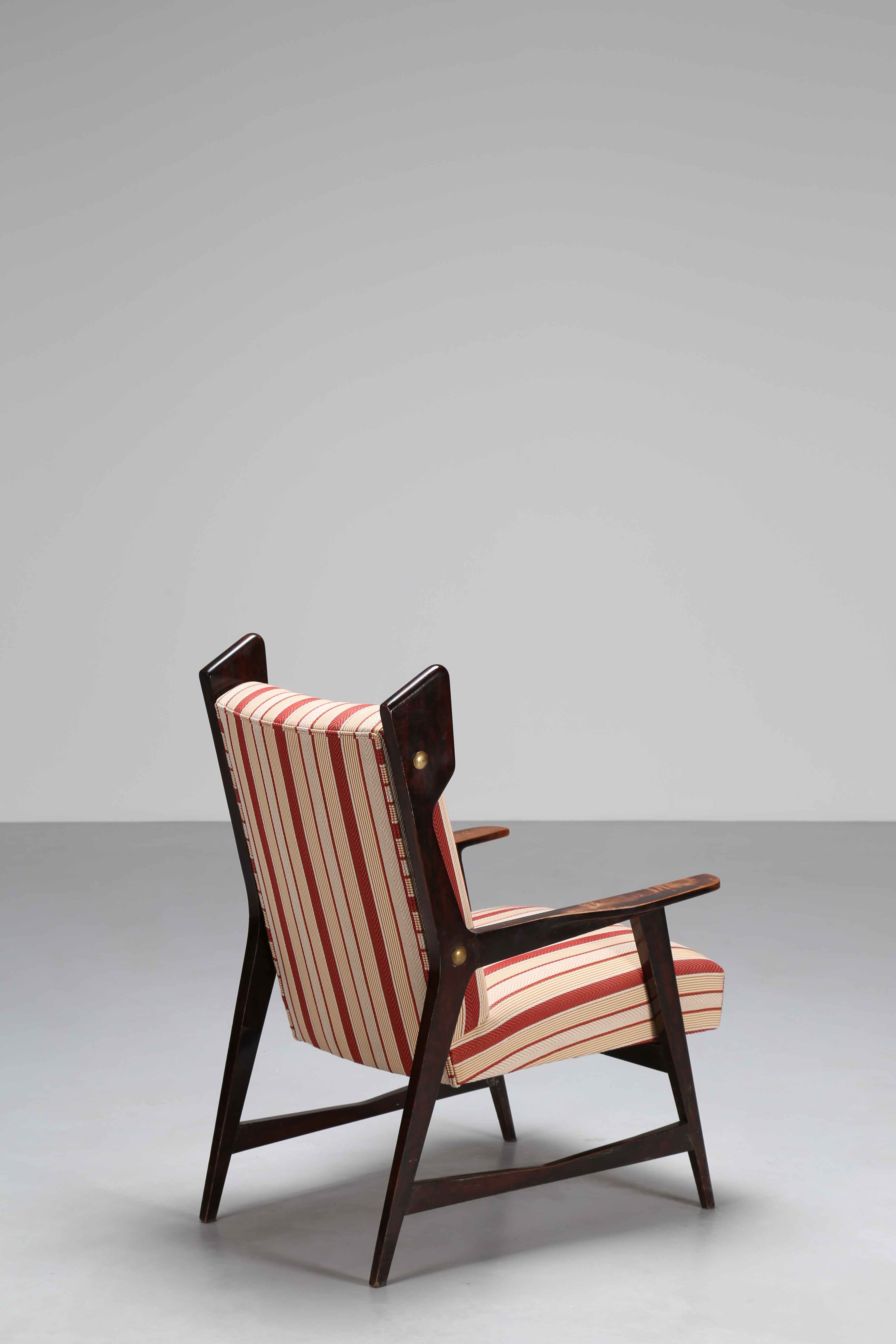 PONTI GIO' (1891 - 1979) Importante e rara poltrona. Tessuto, legno e ottone....