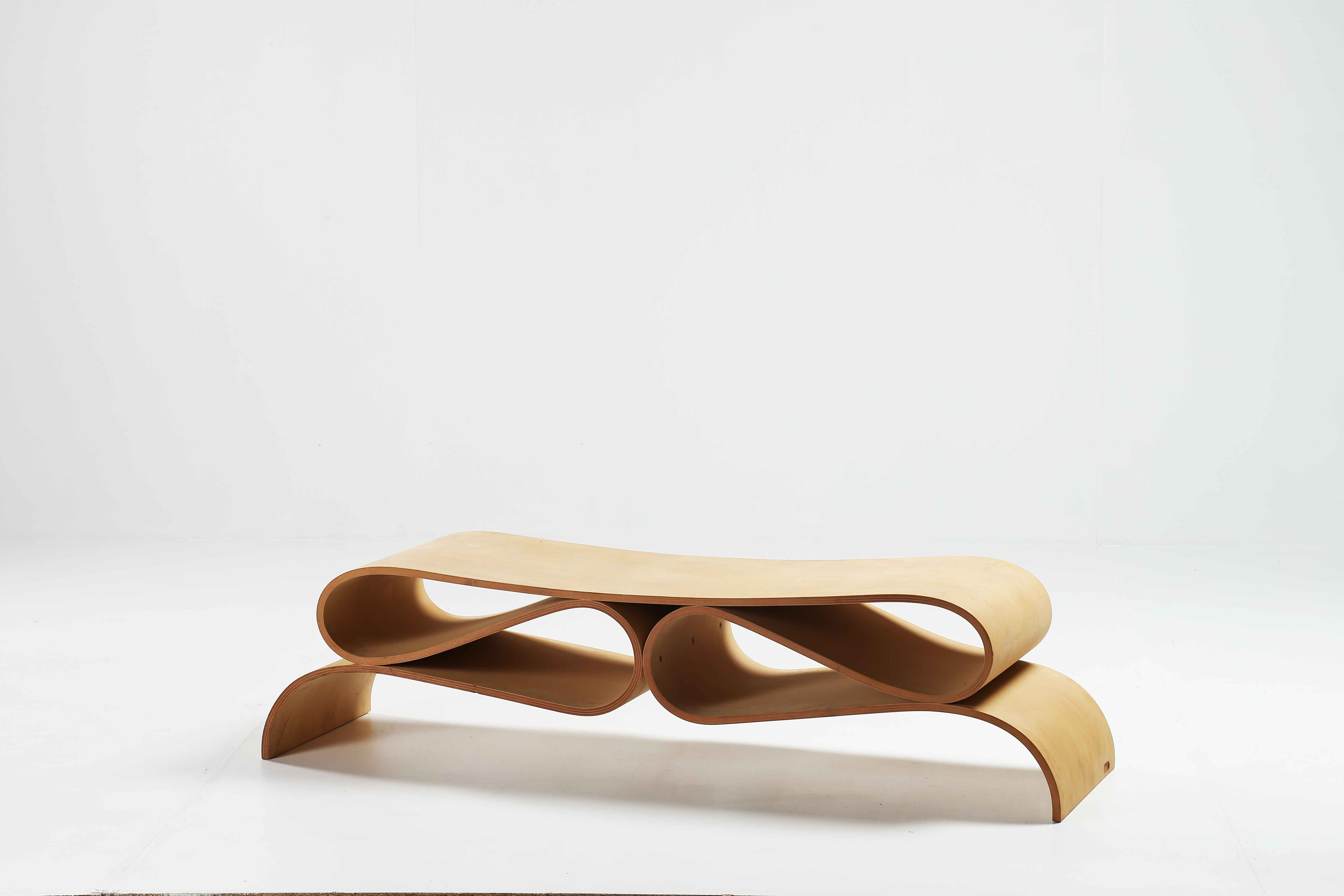 FABBRI AGENORE (1911 - 1998) Panca modello Nastro di Gala in multistrato di legno curvato. Legno. Cm 185,00 x 38,00 x 46,00. Mancante della targhetta nell'incavo che la conteneva. Pubblicazione: 1000 Chairs a cura di C. Fiell, Taschen, Pag.648.