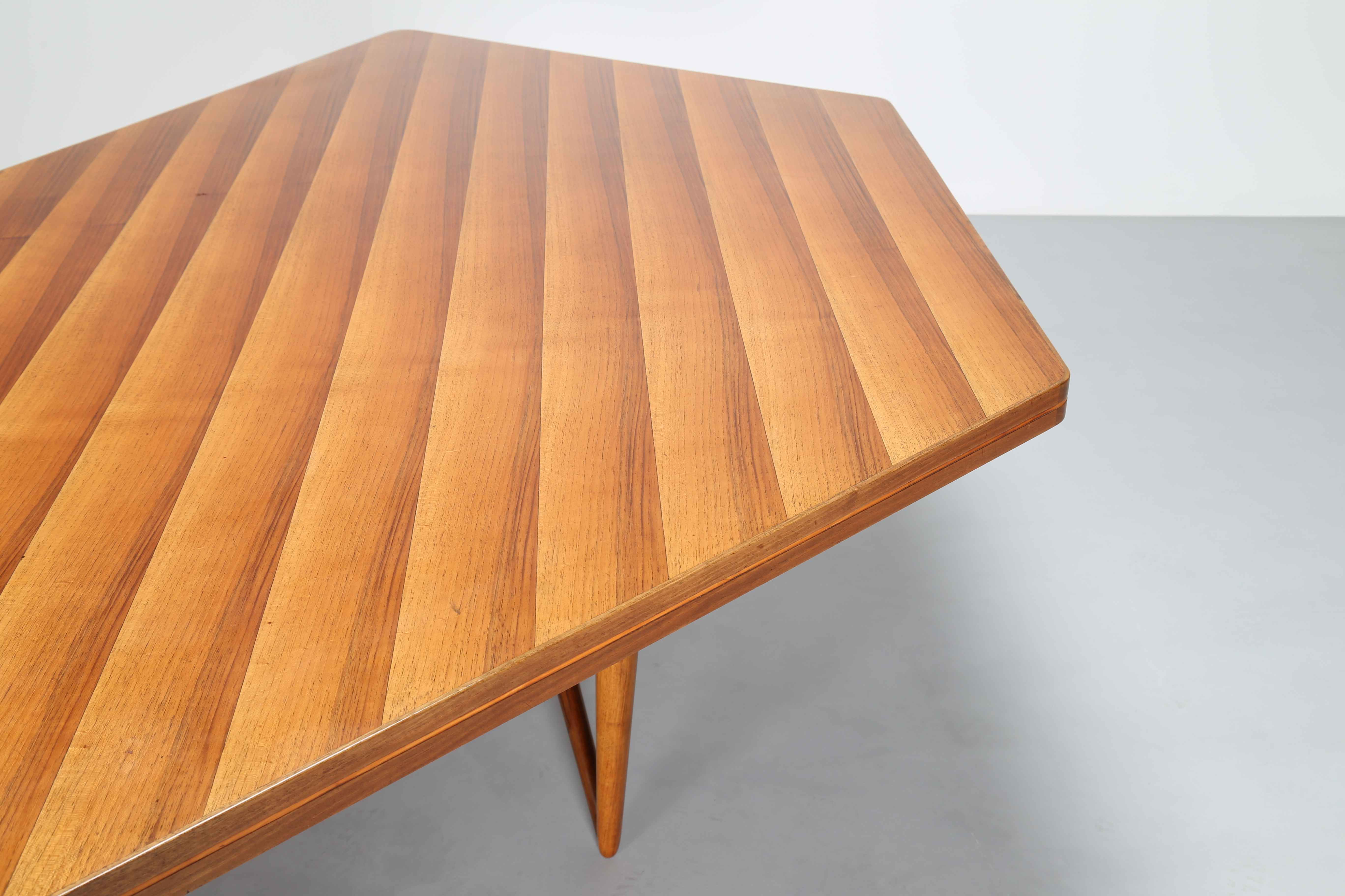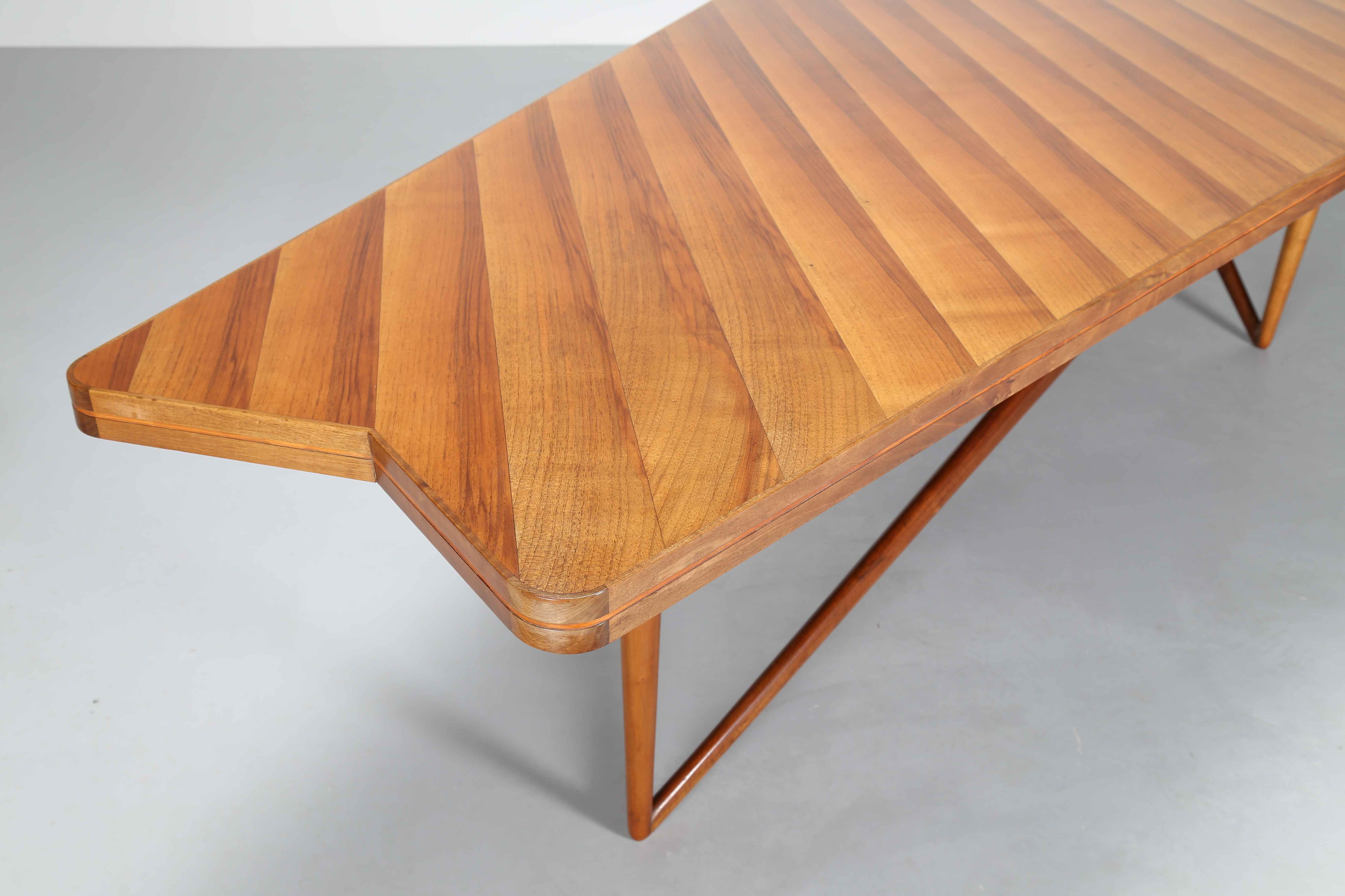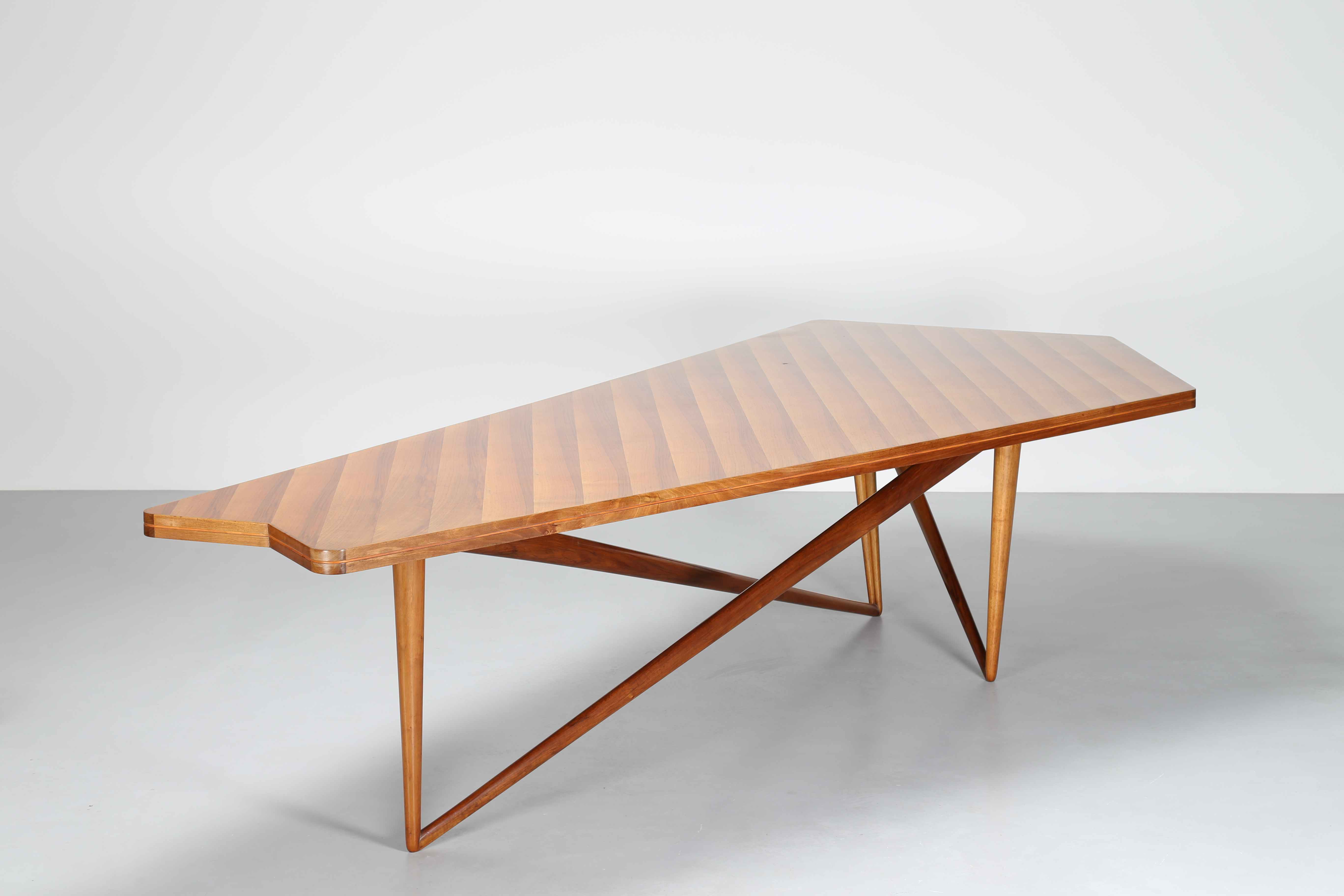 GIORDANI PIERLUIGI Grande tavolo. Legno di noce. Cm 311,00 x 77,00 x 139,50. Eseguito dalla Falegnameria di Bologna per il Consiglio di Amministrazione INA, Casa di Rovigo. 1953/1954.