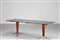 PONTI GIO' (1891 - 1979) ATTRIBUITO A. Per Scremin. Lotto composto da un tavolo e da n. 7 sedie. Legno, ottone e marmo. Cm 46,50 x 91,00 x 51,00. Dimensione tavolo: 78x239x85,5 cm.