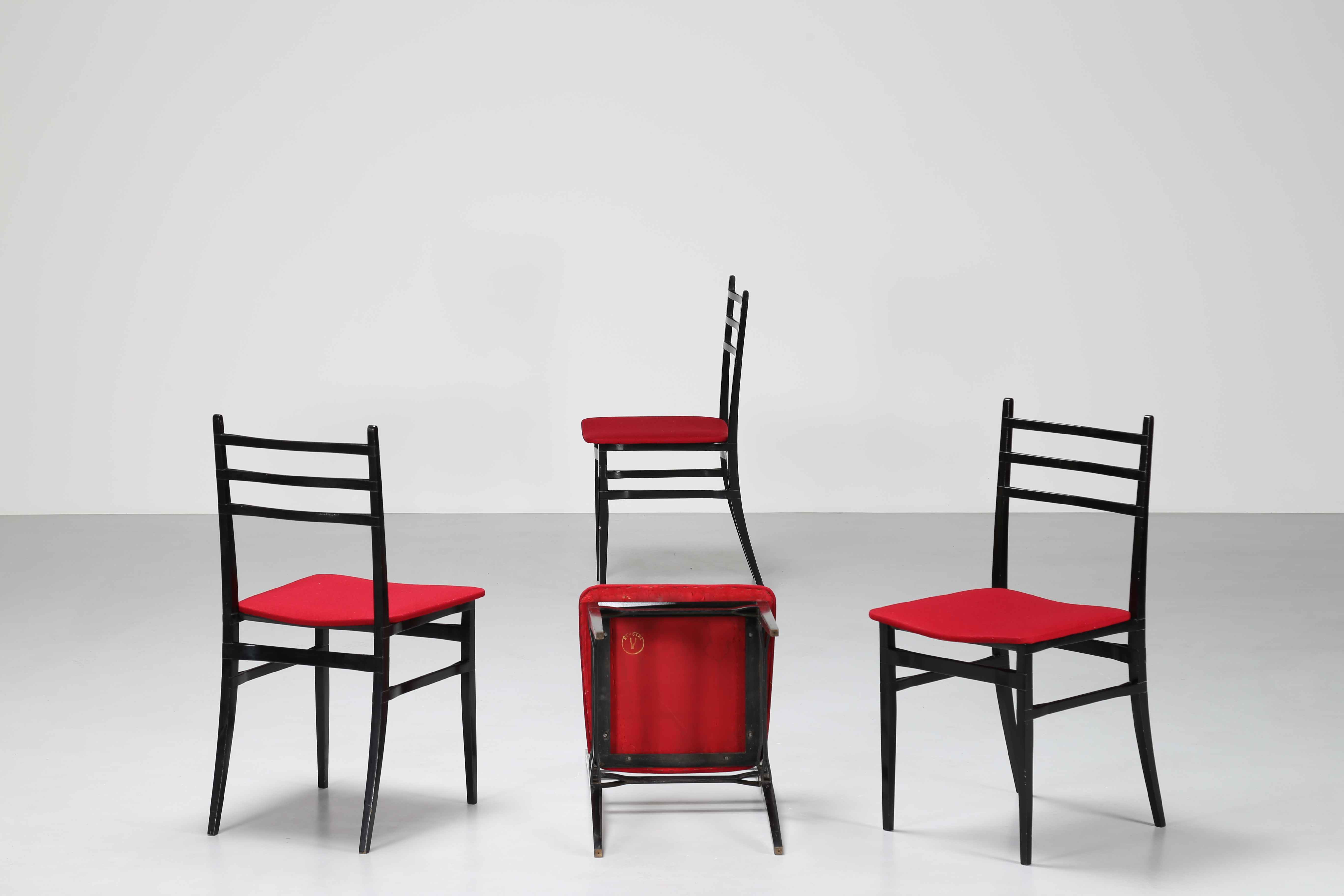 ULRICH GUGLIELMO (1904 - 1977) Per Saffa, Trieste.Lotto composto da n. 4 sedie. 1961. Tessuto e legno. Cm 41,00 x 84,00 x 46,00. For Saffa, Trieste. Lot composed by 4 chairs.