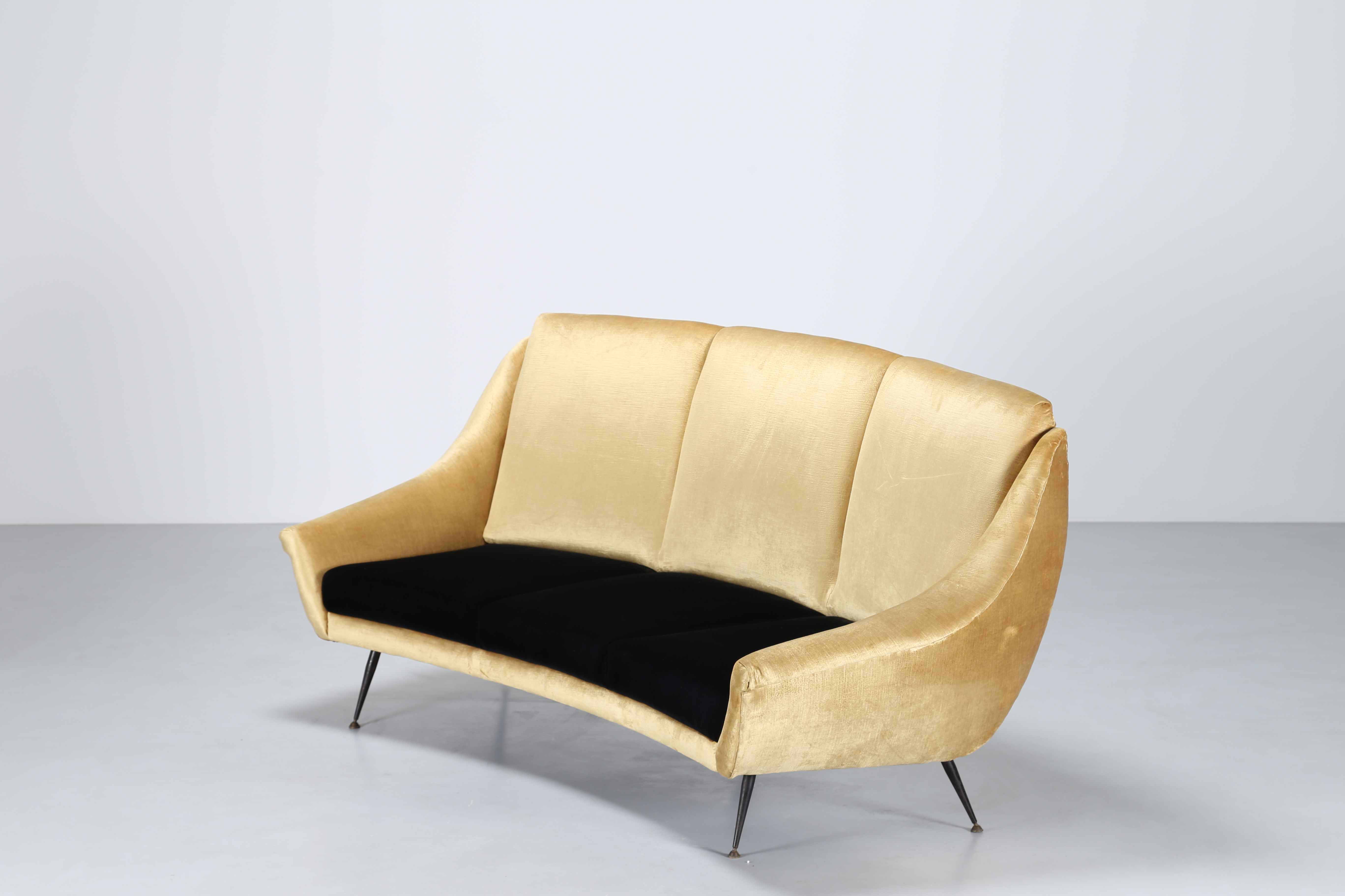 MUNARI FEDERICO Divano a 3 posti nero e giallo. 1950. Ottone e tessuto. Cm...