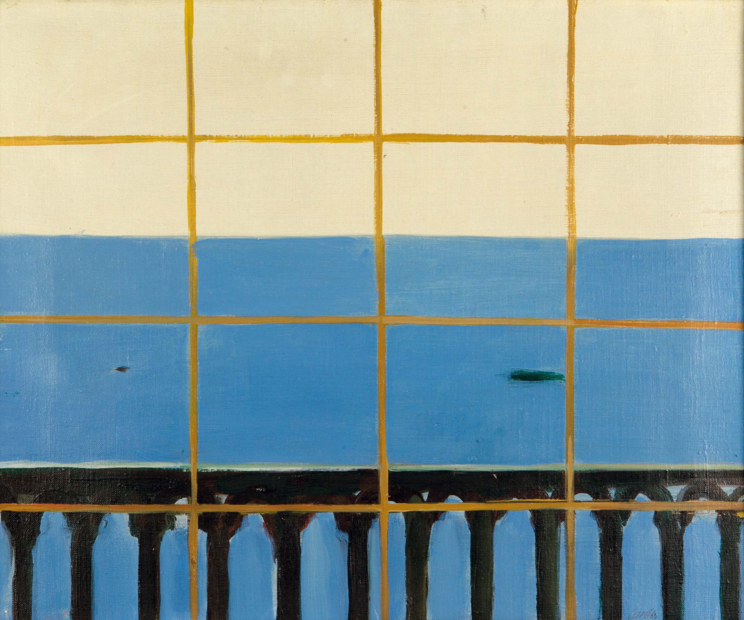 Virgilio Guidi ( 1892-1984), Marina con balaustra, 1960, olio su tela, cm 50x60 Autentica su fotografia di G.Granzotto. Opera pubblicata sul Catalogo Generale a cura di G.Granzotto e D.Marangoni. Pubblicazioni: G.Perocco, “Guidi ’40-’70”, Edizioni Tevere, Roma