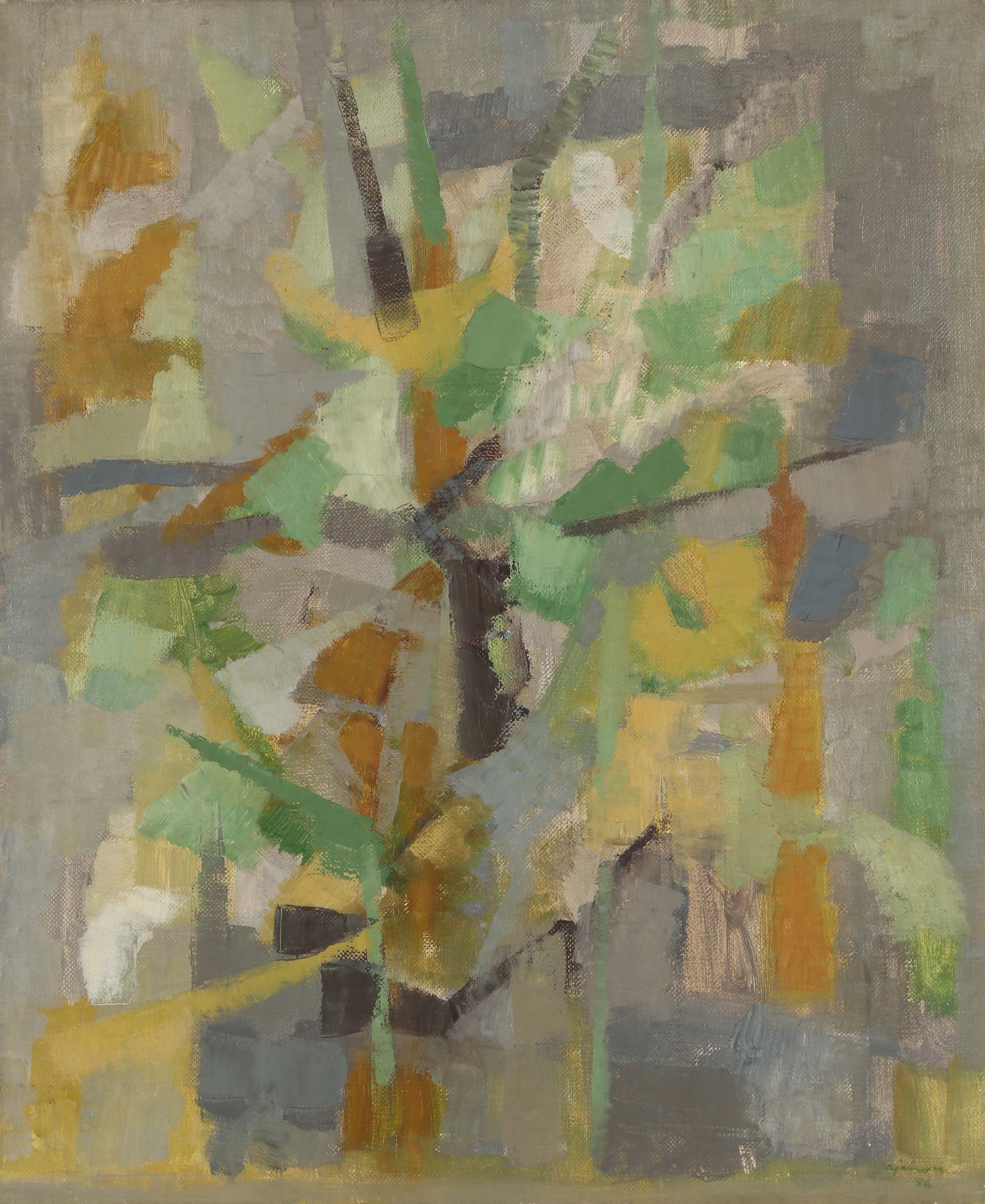 Giuseppe Ajmone (1923-2005), Albero, 1956, olio su tela, cm 73x60 firmato e...