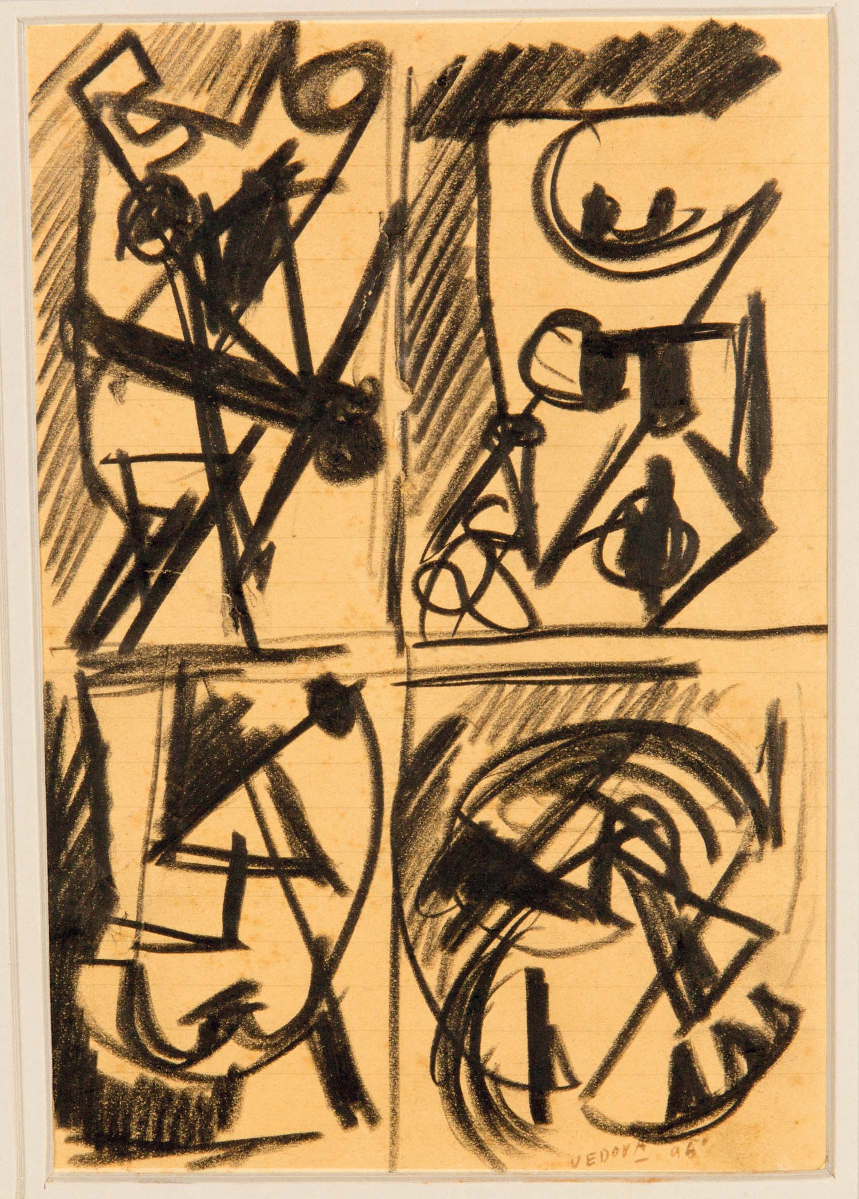 Emilio Vedova (1919-2006), Senza Titolo, 1950, carboncino su carta, cm 20,7 x14. Autentica su fotografia dell’artista n.1120 in data 20/05/04