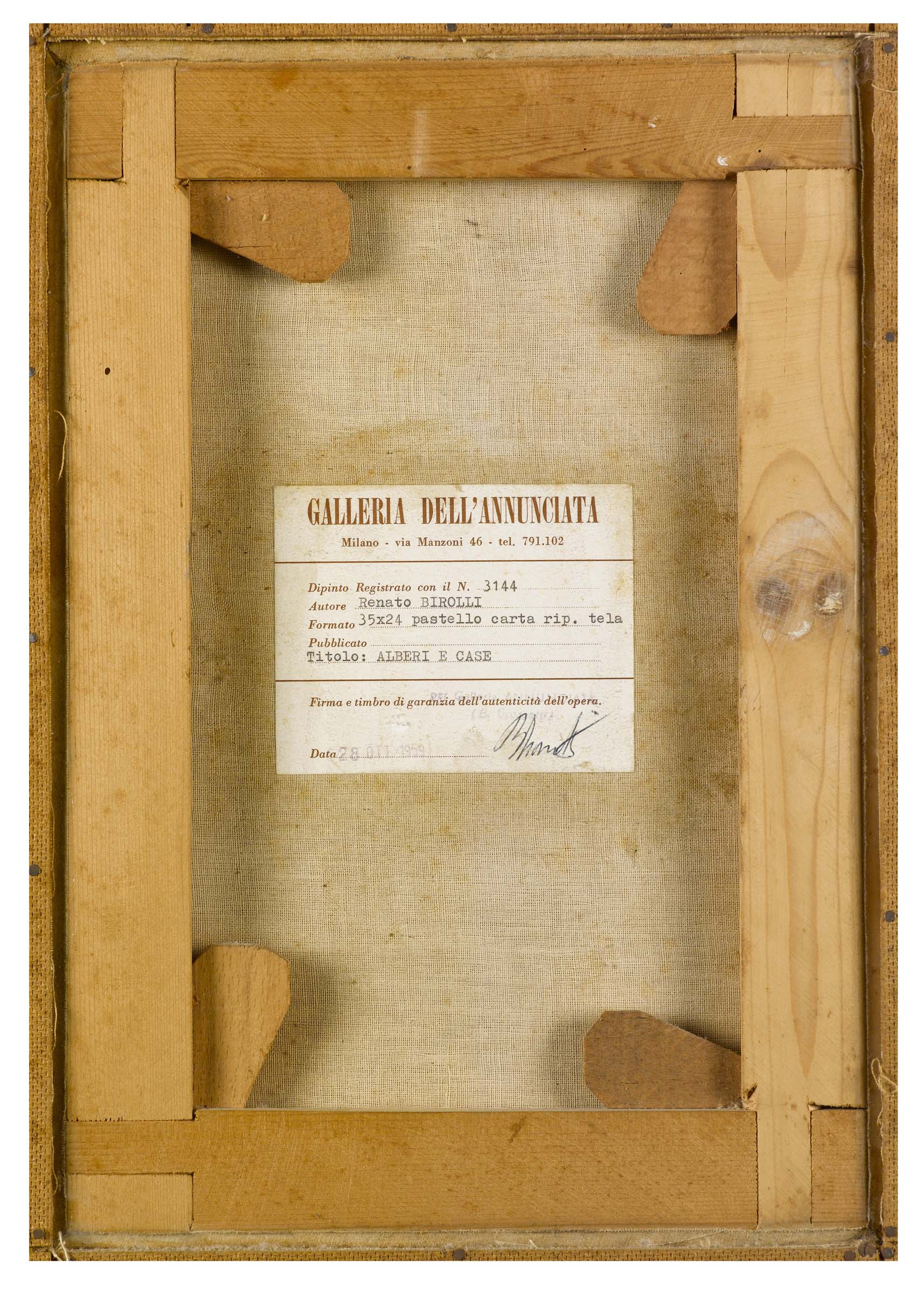 Renato Birolli (1905-1959), Alberi e case, pastello su carta riportato su tela, cm 35x24 Etichetta al retro: Galleria dell’Annunciata, Milano Autentica dell’artista su etichetta Provenienza: Galleria Cesarea, Genova