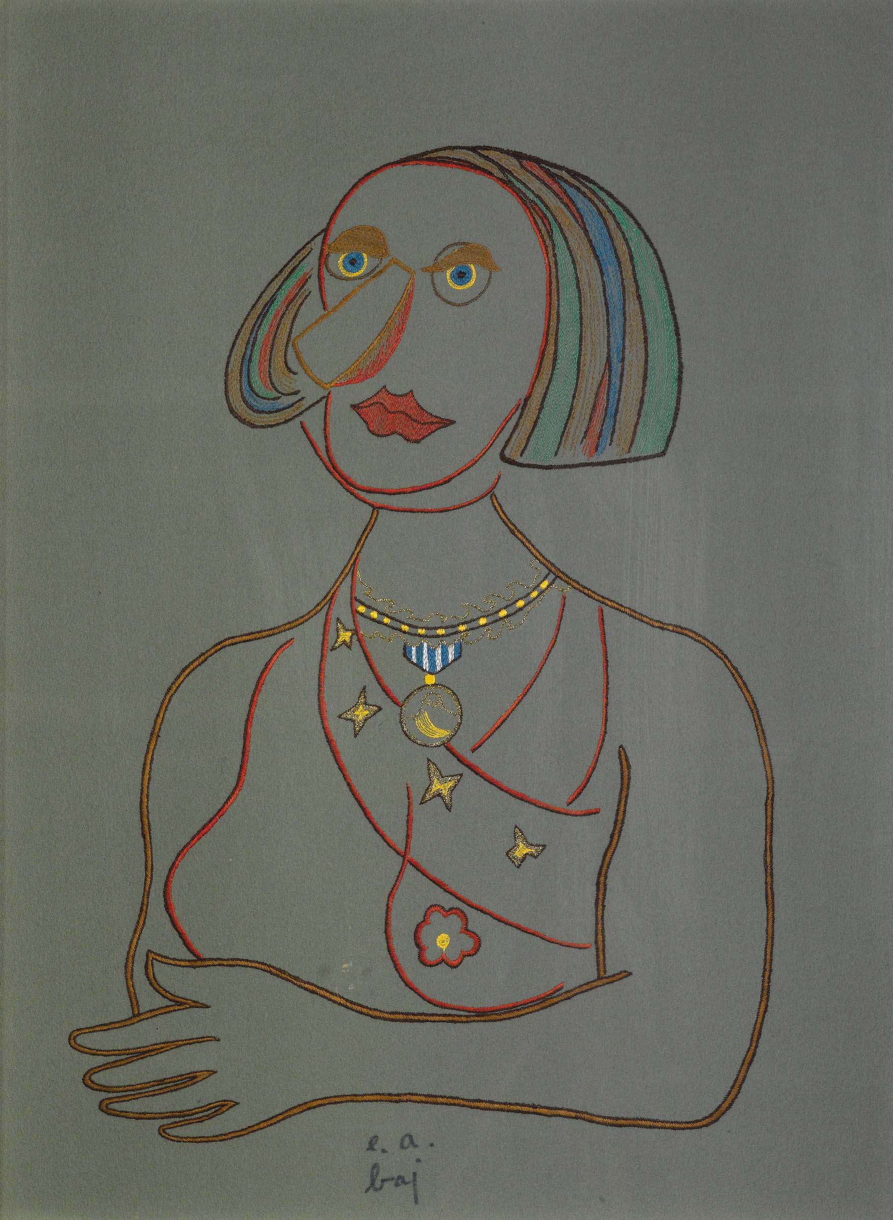 Enrico Baj (1924-2003), Dama, 1979, panno ricamato a mano, cm 79x59 multiplo prova d'artista firmato