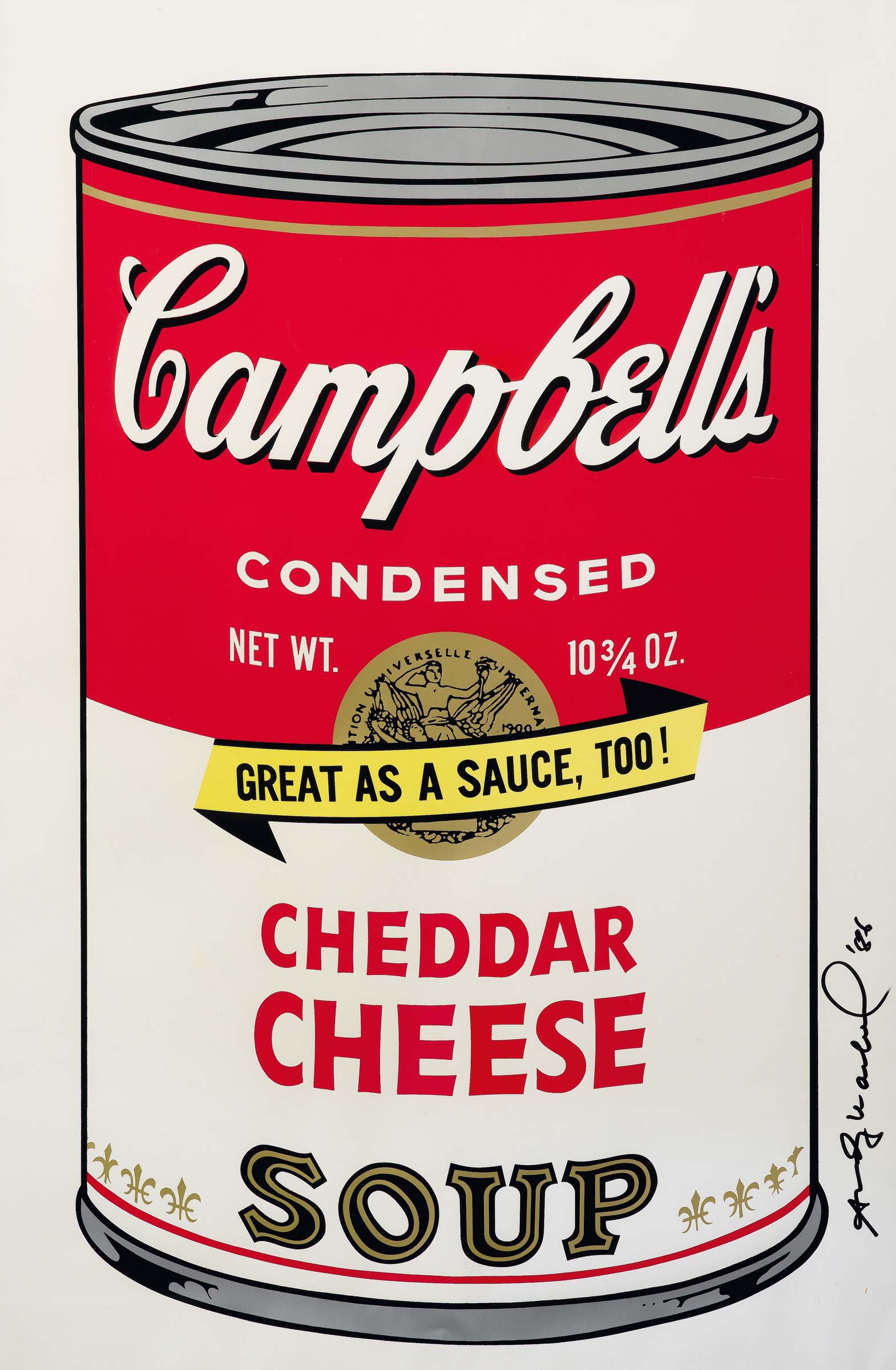 Andy Warhol (1928-1987), Campbell’s Cheddar Cheese Soup,1986 , stampa offset, cm. 90x62 firmata e datata a destra