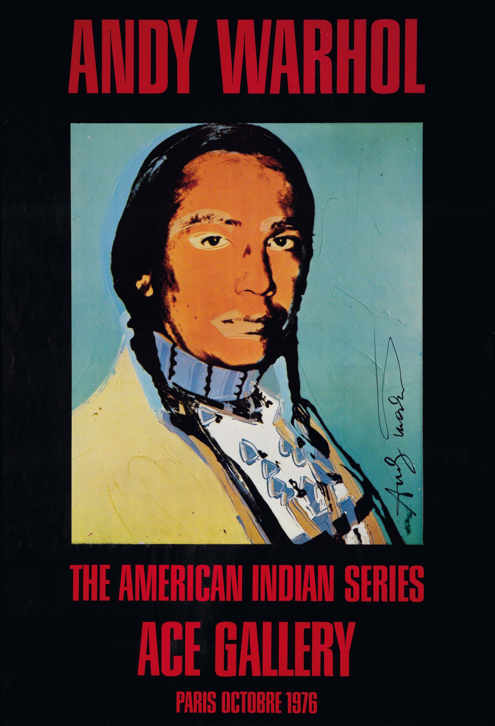 Andy Warhol (1928-1987), American Indian (nero) 1976, Ace Gallery, stampa offset, cm 127x86 firmata al centro a destra