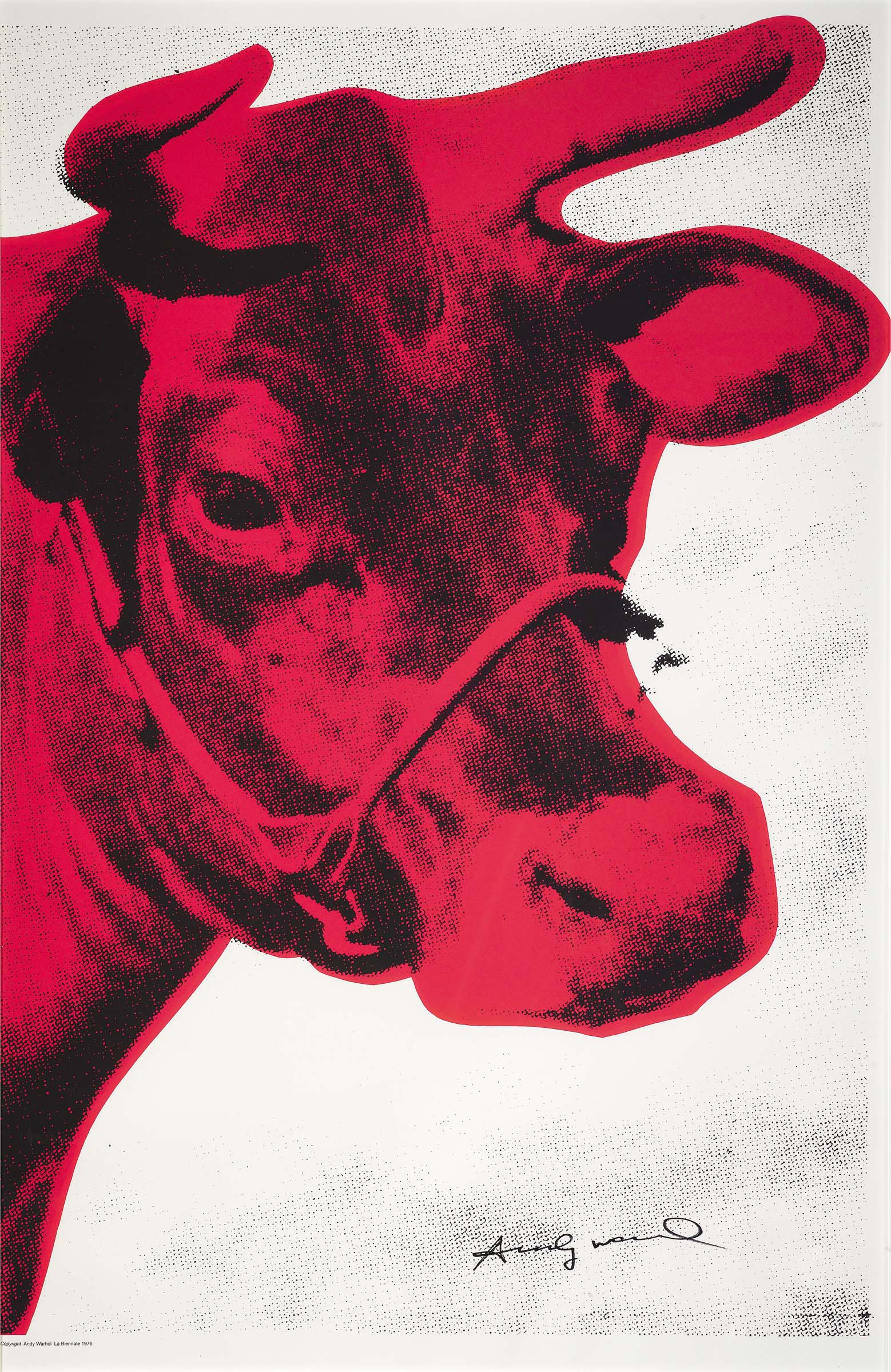 Andy Warhol (1928-1987), Cow, 1976 , poster originale, cm 100x70, in basso a sinistra “Copyright Andy Warhol La Biennale 1976”; firmato in basso a destra