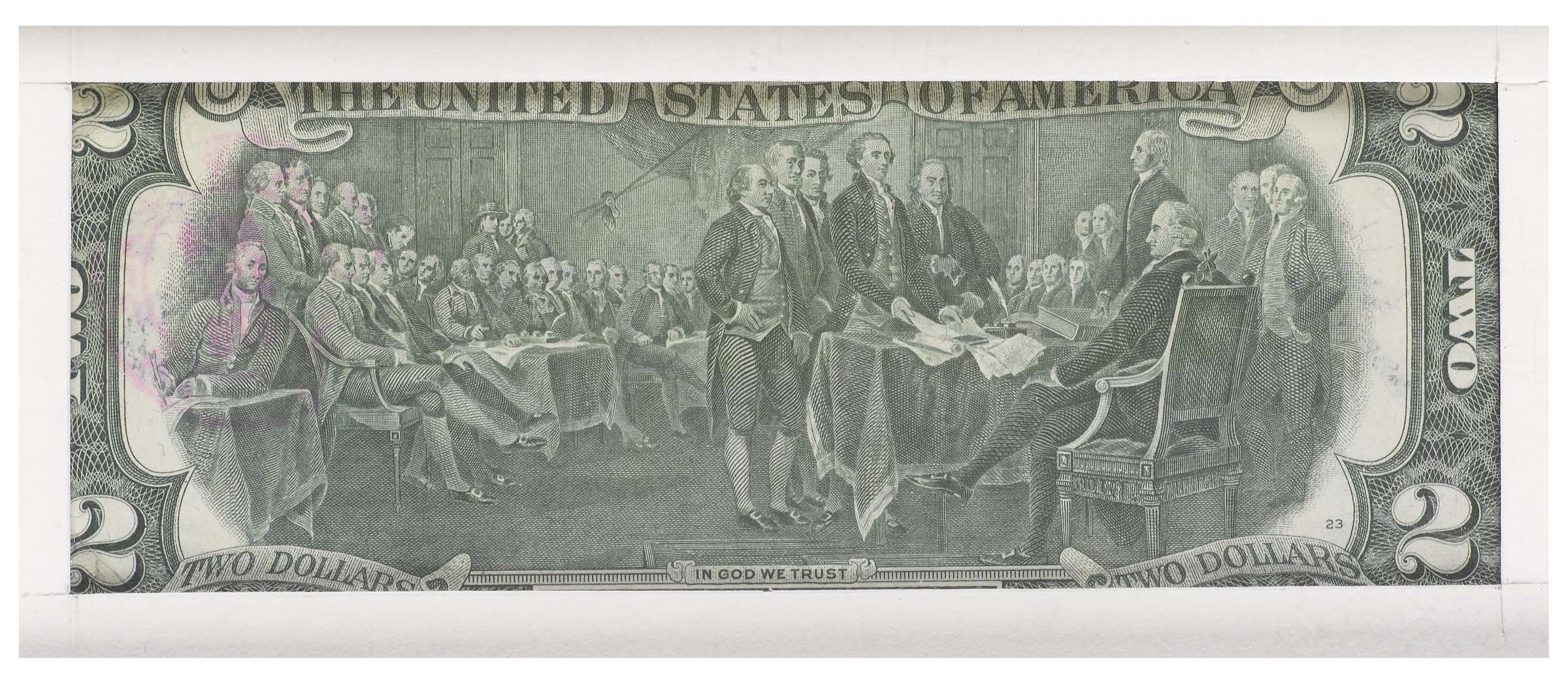 Andy Warhol (1928-1987), Two Dollar Bill, Jefferson , biglietto di banca da due dollari, cm 15,5x6,7 firmato al centro
