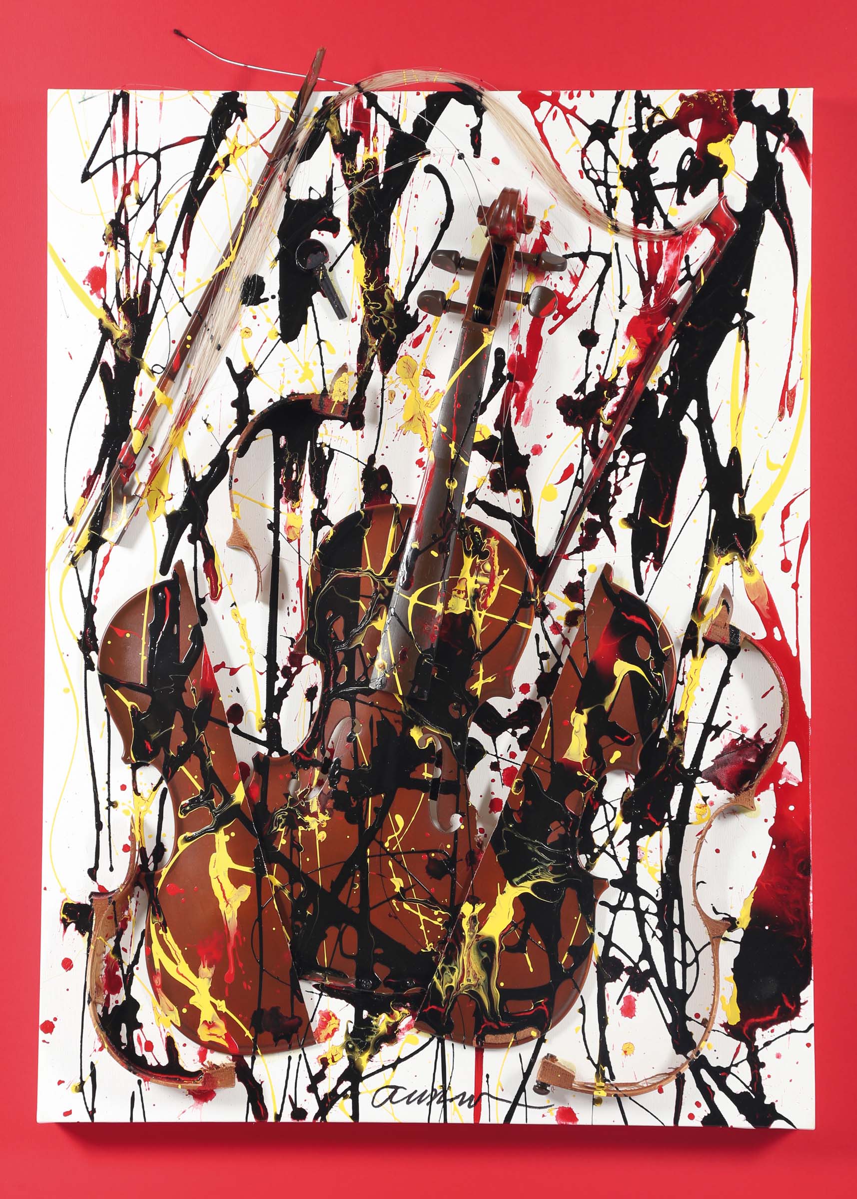 Fernandez Arman (1928-2005), Senza Titolo, 1998, acrilico su tela con violino, cm 70x52 firmato in basso al centro Autentica su fotografia