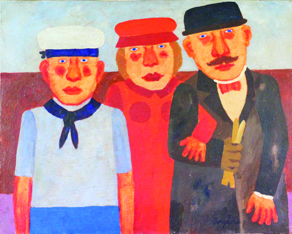 Franz Borghese Trittico Familiare, olio su tela, cm. 40x50, firmato in basso a destra e al retro, numero di matricola al retro della tela, etichetta della Galleria Sant'Erasmo di Milano al retro del telaio con numero di matricola