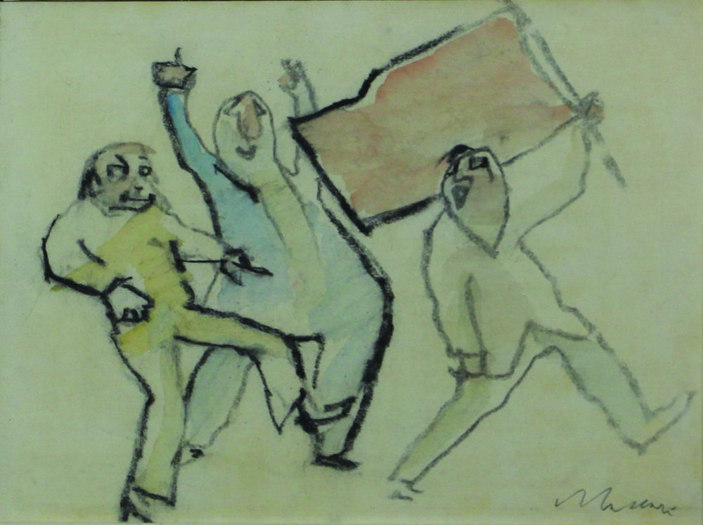 Mino Maccari Bandiera Rossa, tecnica mista su carta applicata su cartoncino telato, cm. 24x32, firmata in basso a destra, certificato di autenticità dell'artista su fotografia con timbri a secco Nemo Galleni, curatore di varie mostre di Mino Maccari