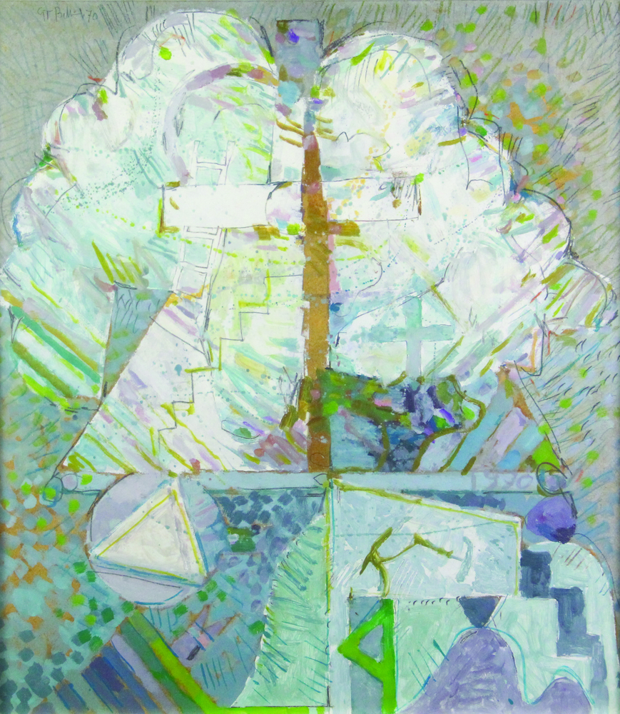 Giorgio Bellandi Studio N 2 Calvario Bizantino, 1970, acrilico su tavola, cm. 64x72, firmato e datato in alto a sinistra, firmato, intitolato e datato al retro