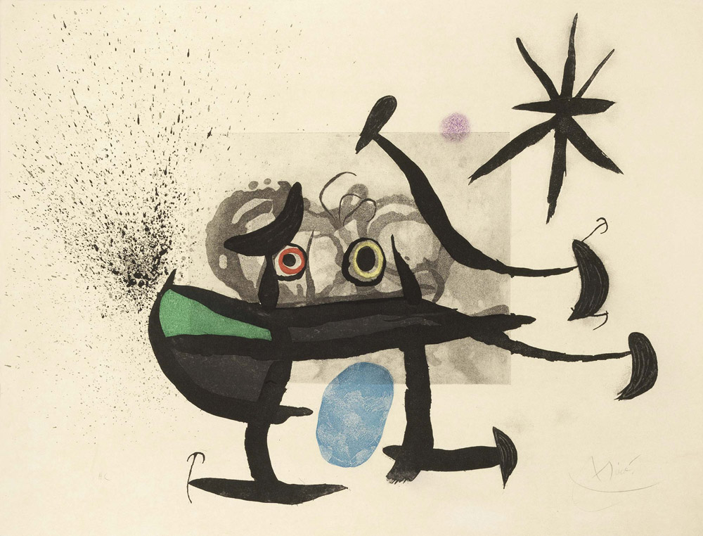 Joan Miró, Barcellona 1893 - Palma di Maiorca 1983, L'invention du regard, 1970, Acquaforte, acquatinta e carborundum, es. H.C., cm. 50,3x66,3, Firma a matita sul margine in basso a destra: Mirò, tiratura in basso a sinistra: H.C., Tiratura di 75 esemplari numerati e firmati e qualche esemplare firmato fuori commercio, editore Maeght, Parigi, stampatore Arte Adrien Maeght, Parigi., Bibliografia: Jacques Dupin, Miró graveur II. 1961-1973, Daniel Lelong Editeur, Paris, 1989, p. 181, n. 537.,