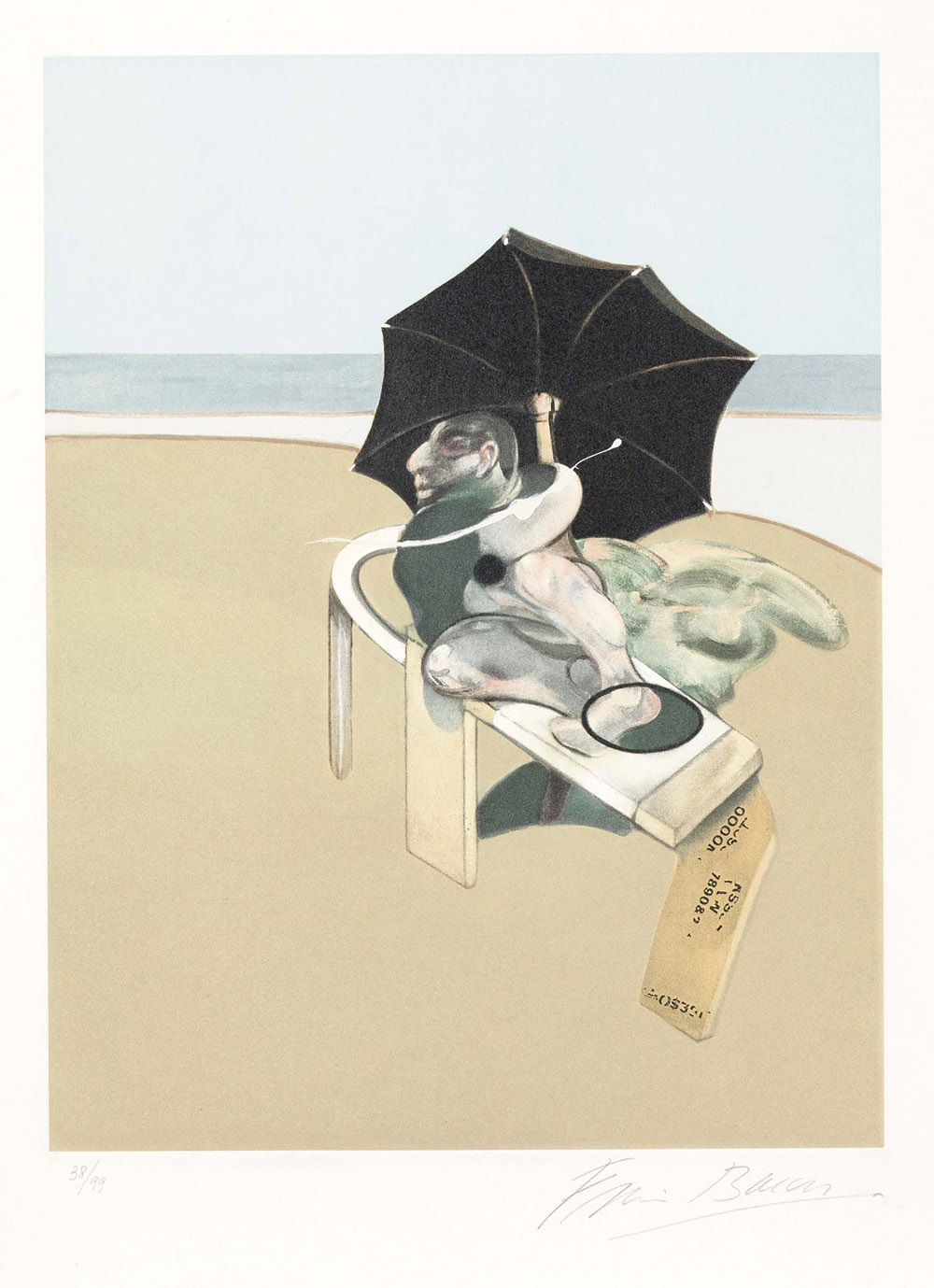 Francis Bacon, Dublino 1909 - Madrid 1992, The Metropolitan Triptich: pannello destro, 1981, Acquaforte e acquatinta a colori, es. 38/99, cm. 38,7x29,6 (lastra), cm. 64,7x49,5 (carta), Firma a matita sul margine in basso a destra: Francis Bacon, tiratura in basso a sinistra: 38/99.,