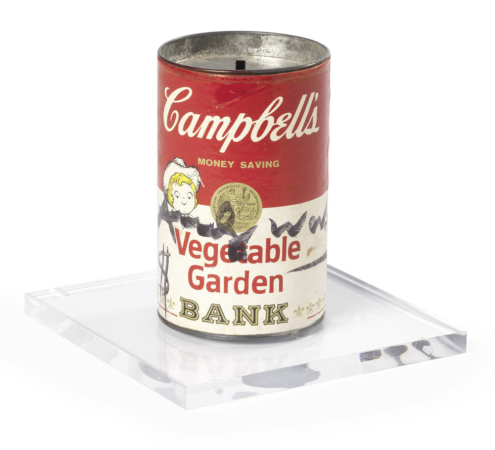 Andy Warhol, Pittsburgh 1928 - New York 1987, Campbell's Vegetable Garden Soup, Lattina, cm. 11,5 h., Firma: Andy Warhol / $., Perizia calligrafica di Frank Garo, Coopersburg, 12 luglio 2015, con n. FPG # 26879.,