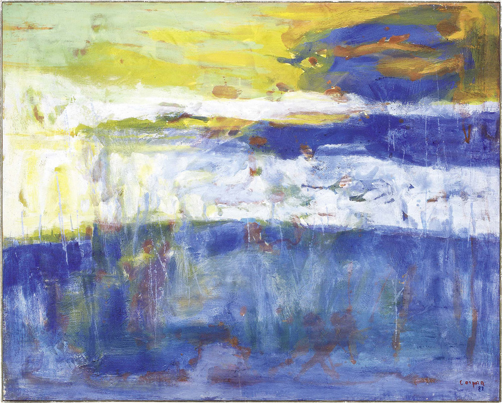 Antonio Corpora, Tunisi 1909 - Roma 2004, Mare in Bretagna, 1982, Olio e murale su tela, cm. 130x162, Firma e data in basso a destra: Corpora / 82: firma, titolo e data al verso sulla tela: Corpora / Mare in Bretagna 1982., Certificato su foto Archivio Antonio Corpora, Roma, 10 gennaio 2008., Esposizioni: Corpora: il tempo scintillante: dipinti e acquarelli dal 1938 al 2002, Cervia, Magazzini del Sale, 30 luglio - 30 settembre 2006, cat. p. 78;, Antonio Corpora. Luce e colori 1909-2009, centenario della nascita, Teramo, Banca di Teramo, 16 settembre - 10 ottobre 2009., Bibliografia: Floriano De Santi, Corpora. Catalogo generale ragionato dei dipinti dal 1930 al 2001, 1° volume, Giovanni Di Summa, Roma, 2004, pp. 241, 406, n. 368.,