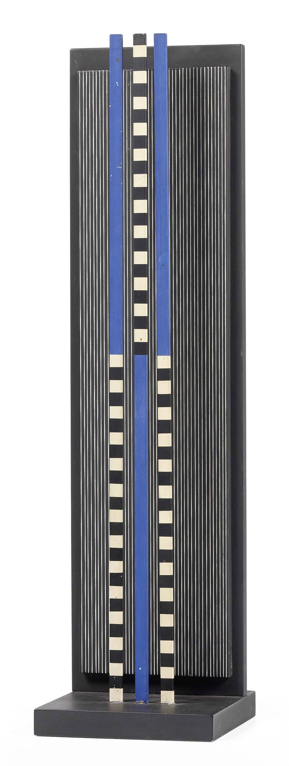 Jesus Raphael Soto, Ciudad Bolivar 1923, Senza titolo, 1966, Legno e alluminio dipinti, multiplo, cm. 65,5 h., Firma incisa al verso su una targhetta con il numero 6: Soto. Scritta incisa sotto la base: Edizioni Sergio Tosi / Jesus Soto 1966 / Tiratura 45., Tiratura di 45 esemplari.,