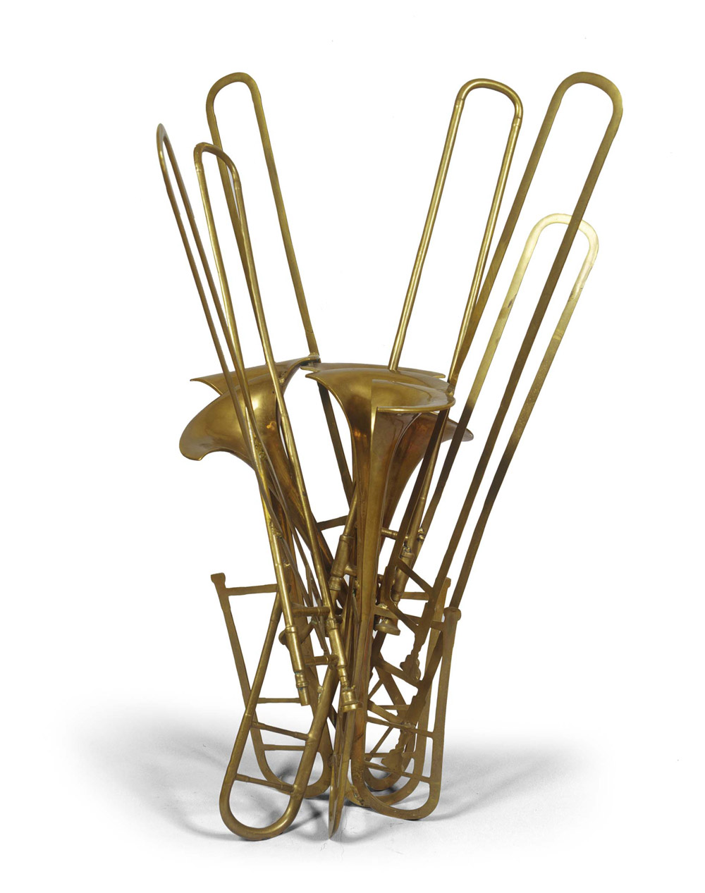 Arman, Nizza 1928 - 2005, Tromboni, 1986, Scultura in bronzo, es. EA 1/2, cm. 107x62x40, Tiratura e firma in basso: EA 1/2 Arman., Opera registrata presso l'Archivio Arman con n. APA.#8306.86.024; certificato su foto Archives Denyse Durand-Ruel, con n. 3128.,