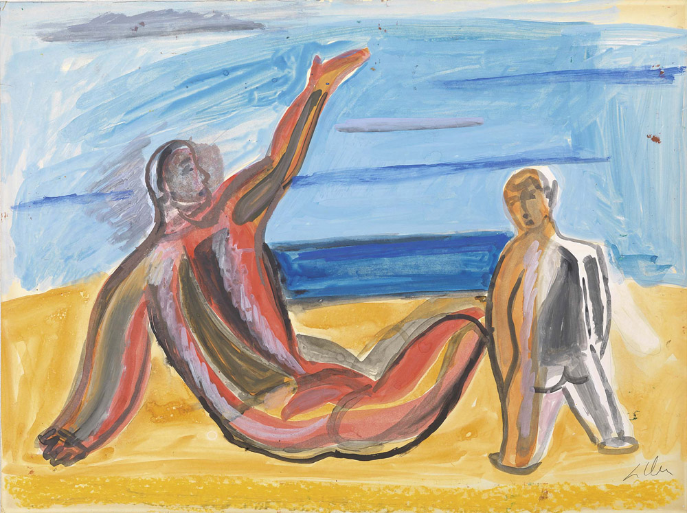 Sandro Chia, Firenze 1946, Figure, Tecnica mista su carta applicata su tela, cm. 57x77, Firma in basso a destra: S. Chia. Al verso sul telaio: timbro Saletta d'Arte Viviani, Pisa, con n. 4421., Foto autenticata dall'artista.,
