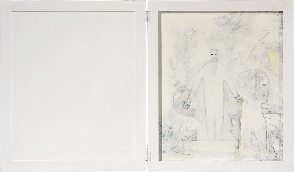 Mimmo Paladino, Paduli (Bn) 1948, Icona, 1992, Olio su tela e legno, cm. 60x50 (tela), cm. 65x57x7 (cassetta chiusa), Firma e data al verso sulla tela: M. Paladino / 1992; sul telaio: etichetta Galleria d'Arte Astuni, con n. 70/PL38/708., Foto autenticata dall'artista.,
