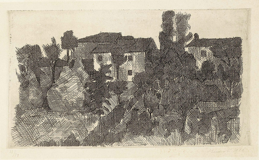 Giorgio Morandi, Bologna 1890 - 1964, Il Poggio di sera, 1928, Acquaforte su...
