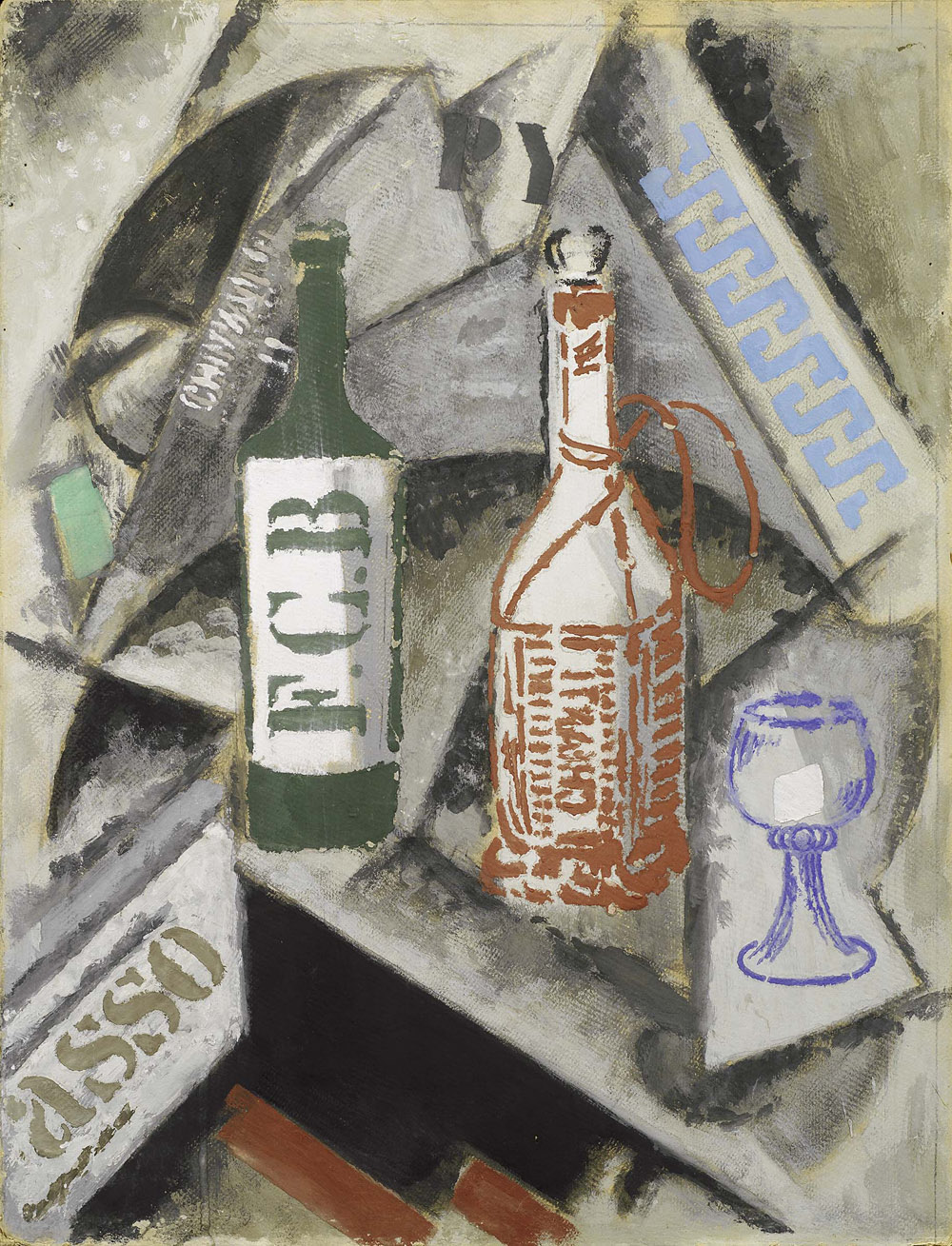 Ardengo Soffici, Rignano sull'Arno (Fi) 1879 - Vittoria Apuana (Lu) 1964, Trofeino, (1948), Tempera su cartone, cm. 65,1x50,2 Al verso: etichetta e due timbri Galleria del Naviglio, Milano: timbro Galleria del Naviglio, Milano, con n. 2131 e firma Cardazzo: timbro Galleria Annunciata, Milano, con n. 6776. Storia, Raccolta Gualino, Roma;, Collezione privata Certificato su foto di Luigi Cavallo, Milano, 13 febbraio 1979. Bibliografia, Giuseppe Ungaretti, Pittura contemporanea, Cappelli, Bologna, 1950, n. 58.