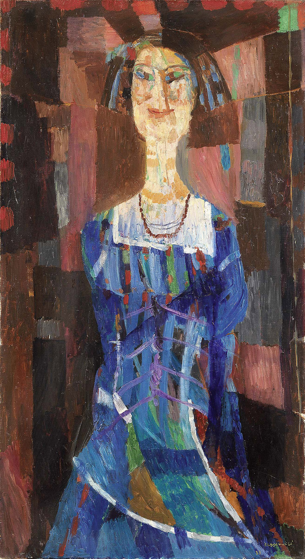 Bruno Cassinari, Piacenza 1912 - Milano 1992, Figura, 1958, Olio su tela, cm. 121x65 Firma e data in basso a destra: Cassinari / 58. Al verso sulla tela: etichetta VIII Quadriennale Nazionale d'Arte di Roma / Roma 1959 - 1960; sul telaio: etichetta Galleria Gissi, Torino / Mostra Antologia di pittori contemporanei, con n. 6434: timbro Galleria Gissi, Torino, con n. 6434. Storia, Collezione Di Pasquantonio, Milano;, Galleria Gissi, Torino;, Collezione privata Foto autenticata dall'artista, con timbro Galleria Gissi, Torino, n. 6434. Esposizioni, VIII Quadriennale Nazionale d'Arte, Roma, Palazzo delle Esposizioni, dicembre 1959 - aprile 1960, cat. n. 3. Bibliografia, Marco Rosci, Cassinari. Catalogo generale dei dipinti volume primo, opere 1930-1961, Electa, Milano, 1998, p. 278, n. 1958 60.
